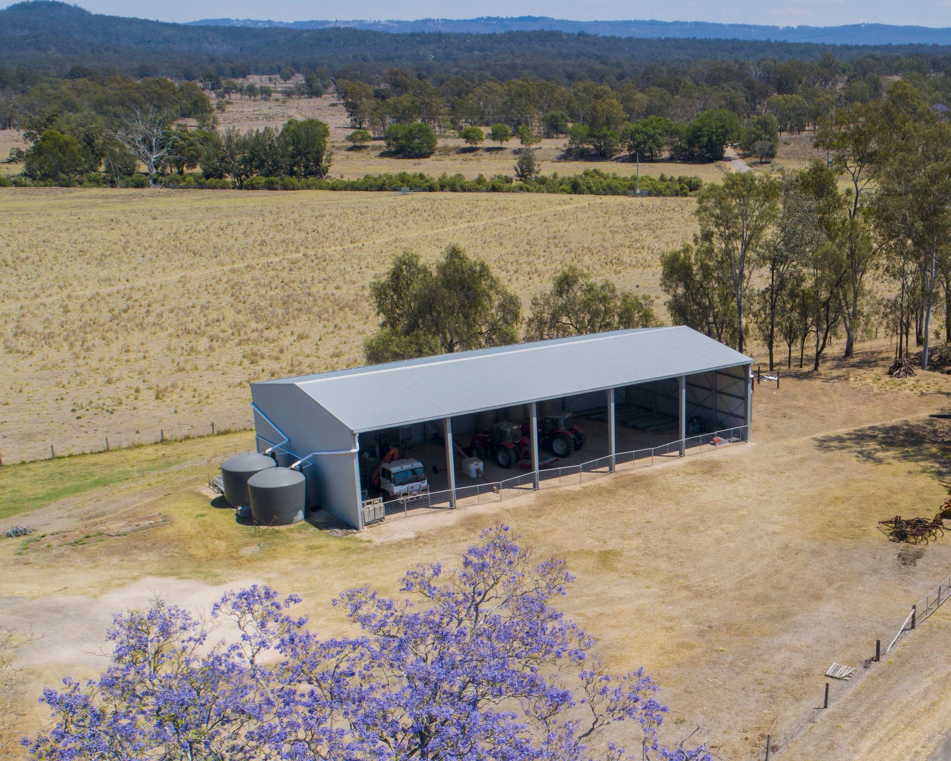 -30m x 15m x 6m hay shed enclosed 3 sides.