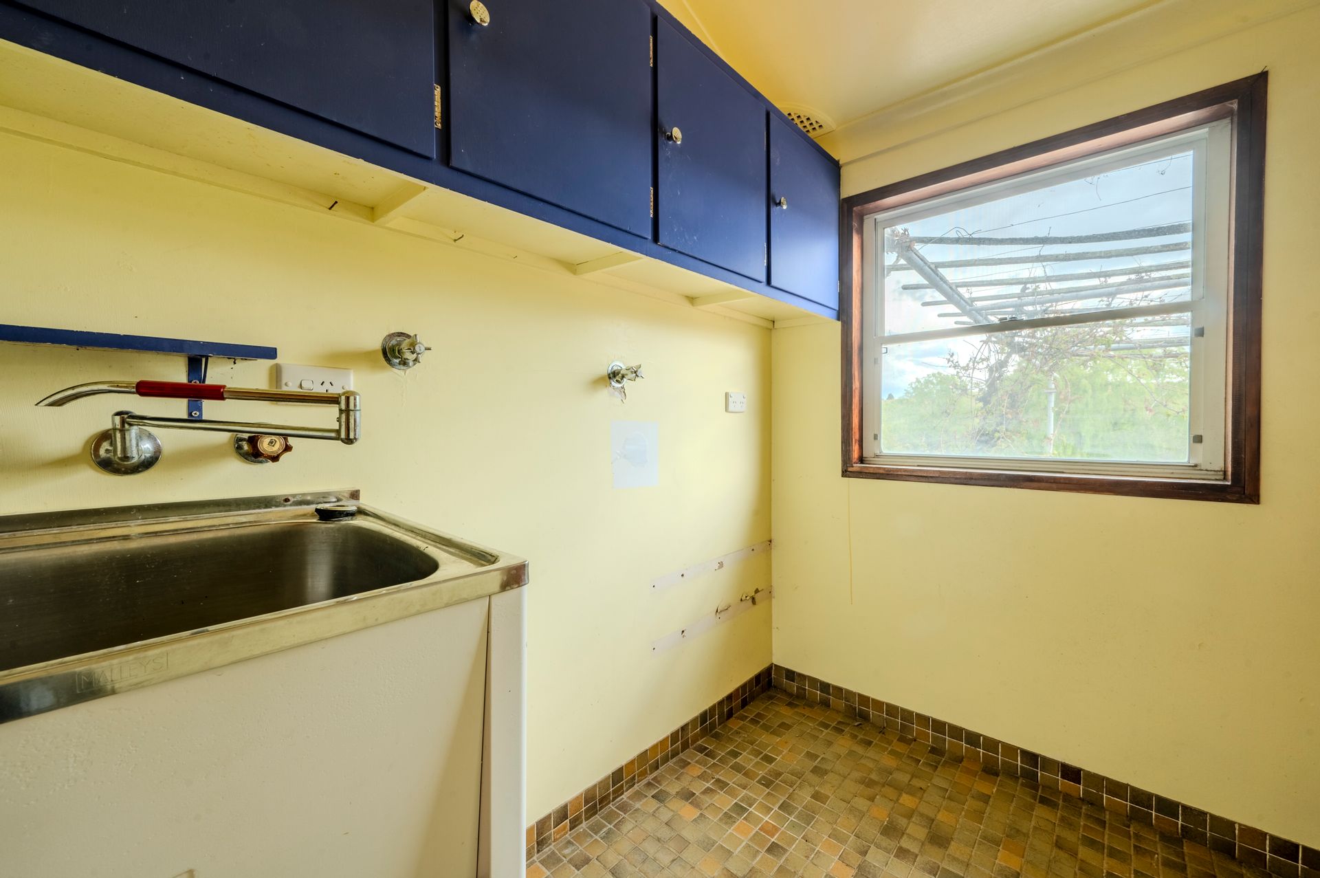 • The original kitchen occupies a large space if you decided on an upgrade, however it is serviceable, with electric cooking, dishwasher and wall oven, pantry cupboards, breakfast bench and plenty of room for a side by side fridge/freezer