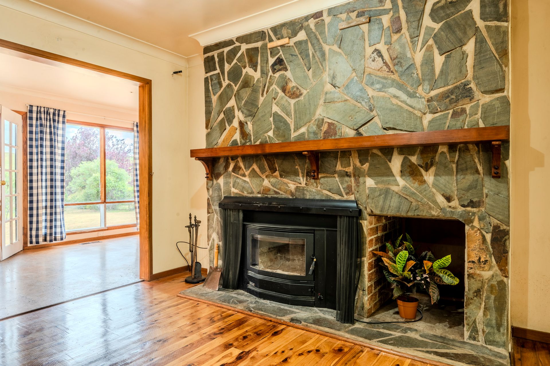 • Lounge room features a 12 month old slow combustion wood heater built into a stone fireplace with external access to wood box