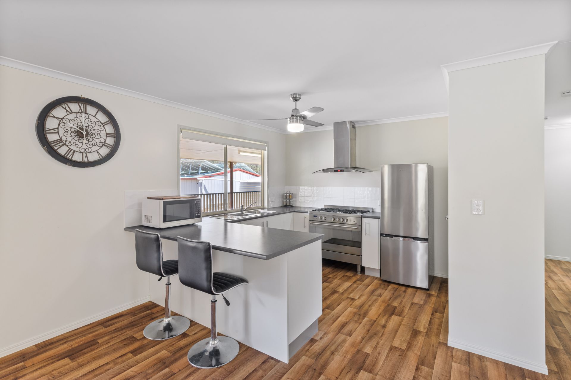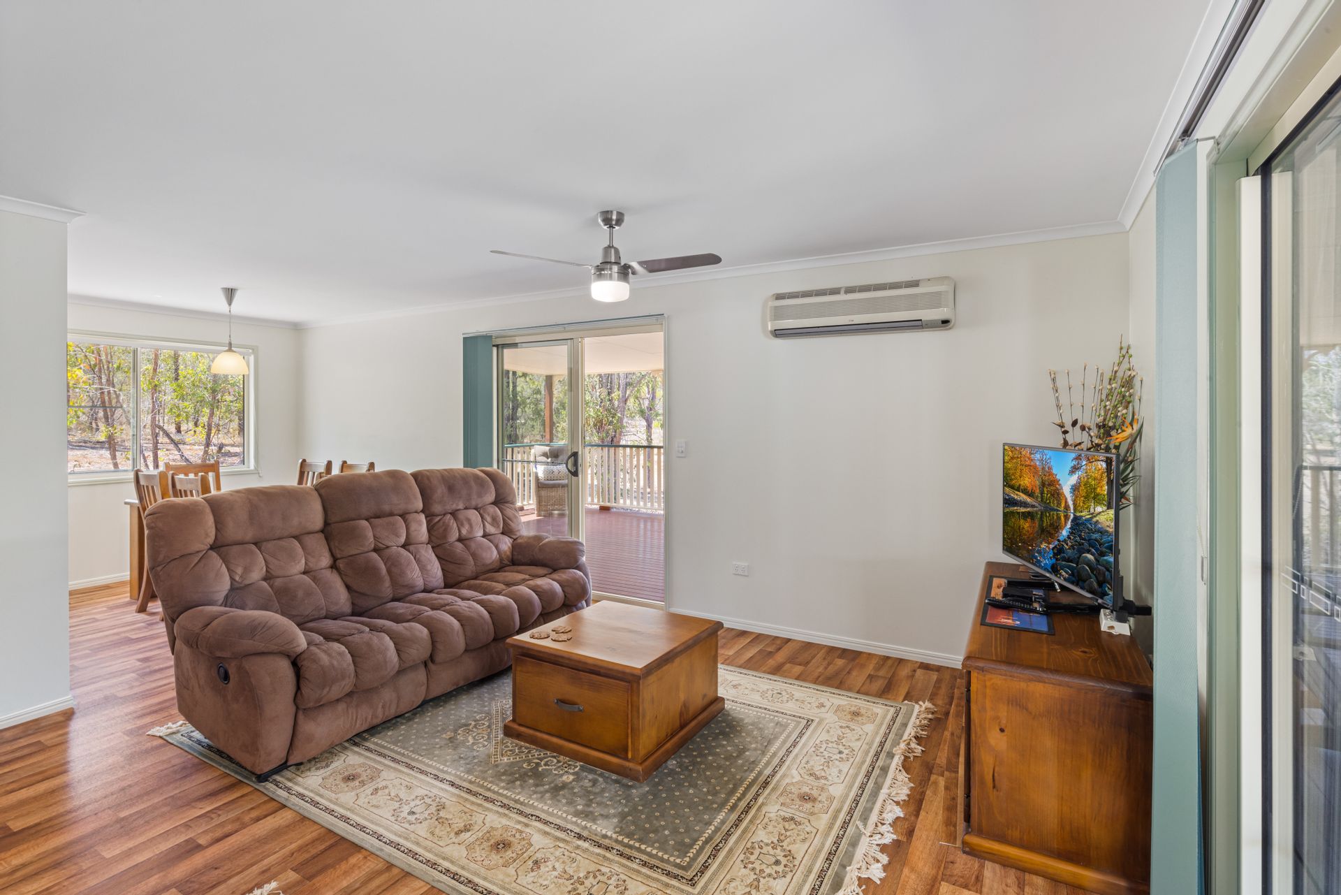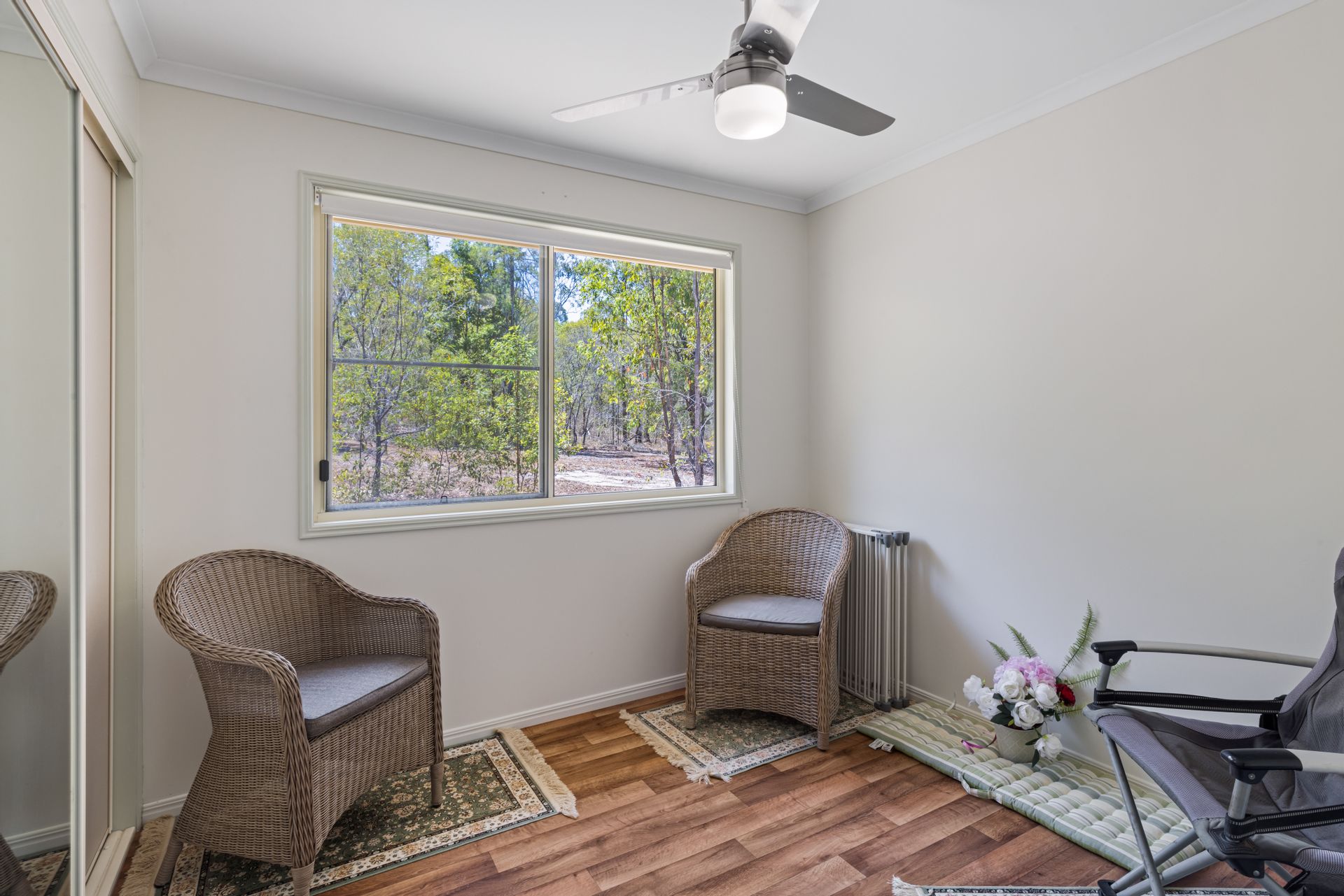 Walk through the doors of this off-grid Hardiplank home to discover a huge open-plan living and dining area and three well-appointed bedrooms that offer views of the acreage and woodland. The hub of the residence has a kitchen that is equipped with gas cooking and plenty of storage and bench space.