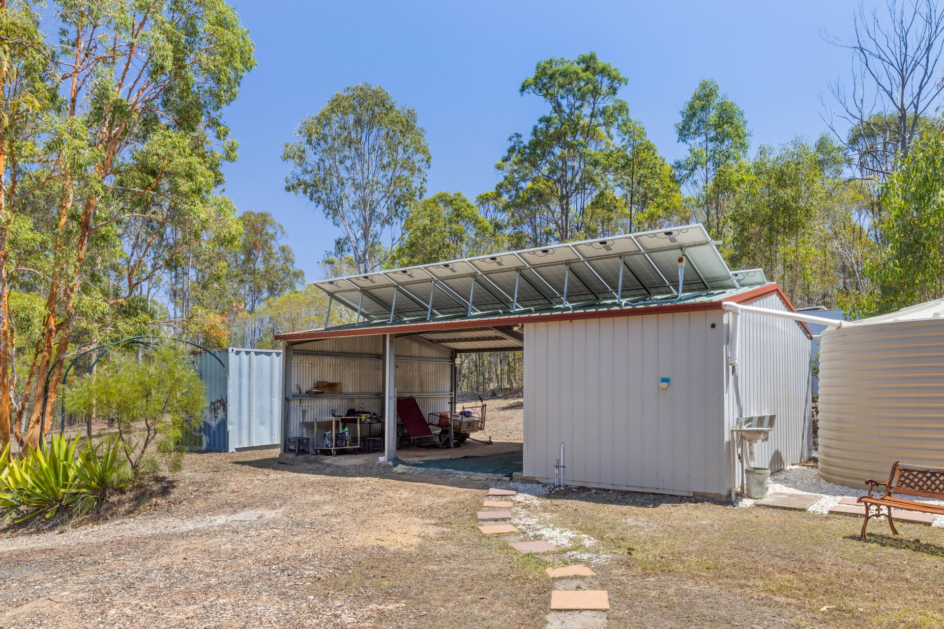 Sustainability is not an afterthought here - with off-grid 5.5kw solar panels with 24 batteries a Honda generator and rainwater storage, you'll have peace of mind knowing your impact on the environment is minimal. Situated in the tranquil suburb of Glenwood, the property boasts proximity to the bustling township of Gympie, offering a perfect blend of rural tranquillity and urban convenience.