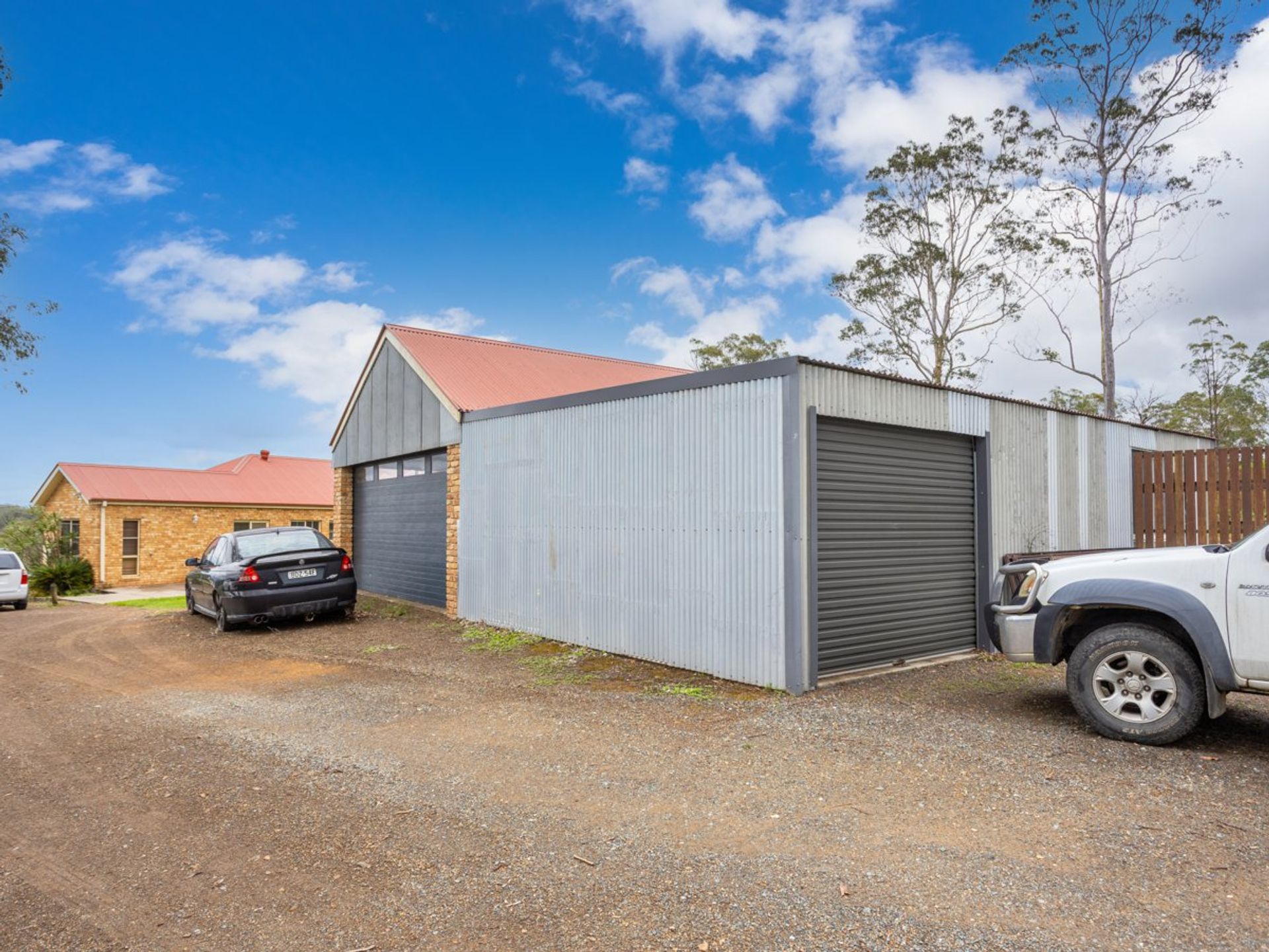- Double bay shed with attached storage shed