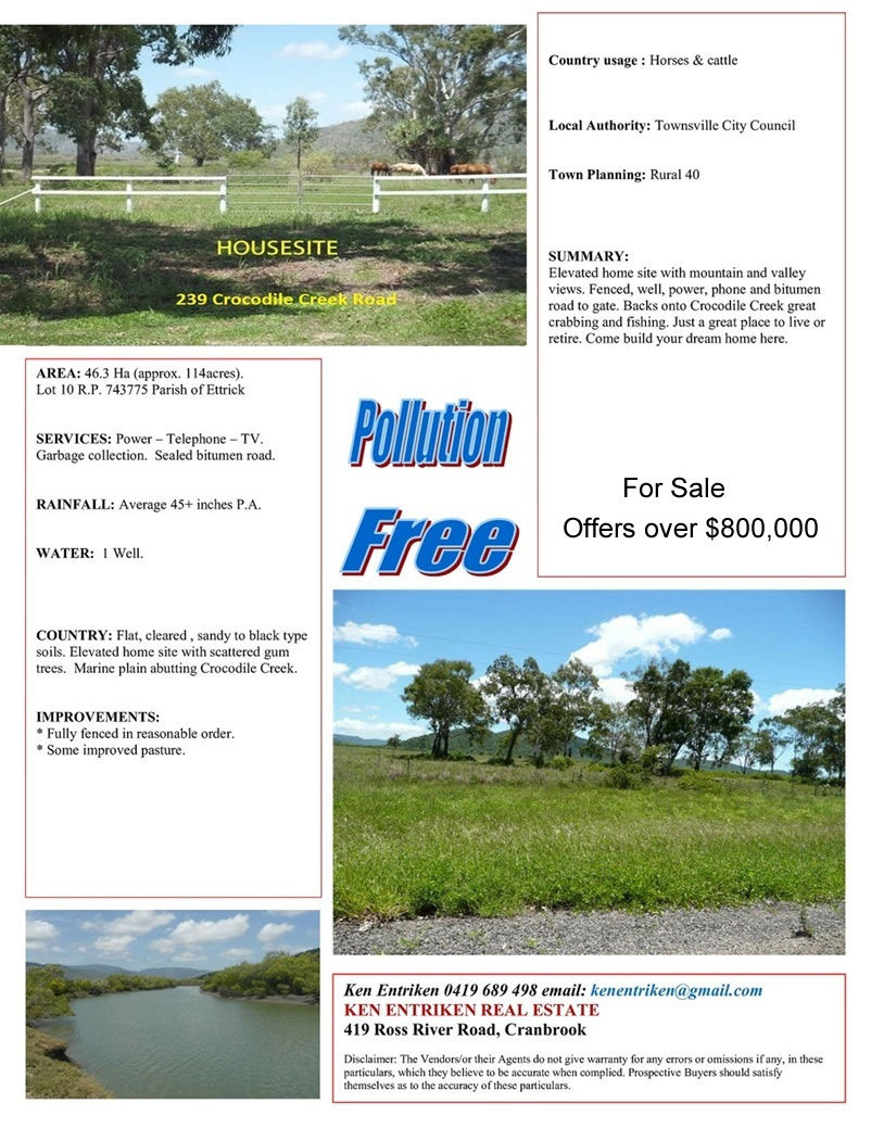 For Sale: 239 Crocodile Creek Road Cape Cleveland QLD 4810