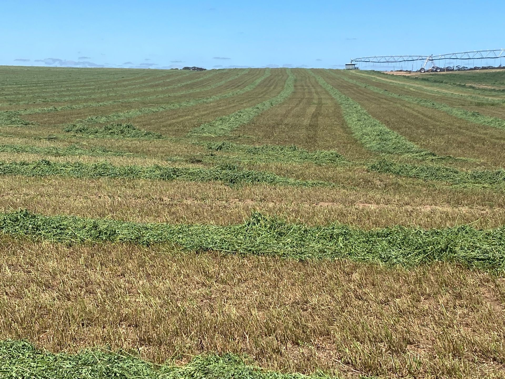 Lucerne, cropping and grazing property - This is a rare opportunity to purchase an income generating property with suppliers in place and demand for lucerne every increasing. Lucerne production currently ranges from 15,000 – 18,000 p.a with a one-man operation and could easily be significantly expanded as only half the pivot is being used currently. Lucerne bales currently all sold at $14.50 + GST (should be higher?) per small bale (approx.). Fully fenced for sheep with over 350 acres of internal fencing.