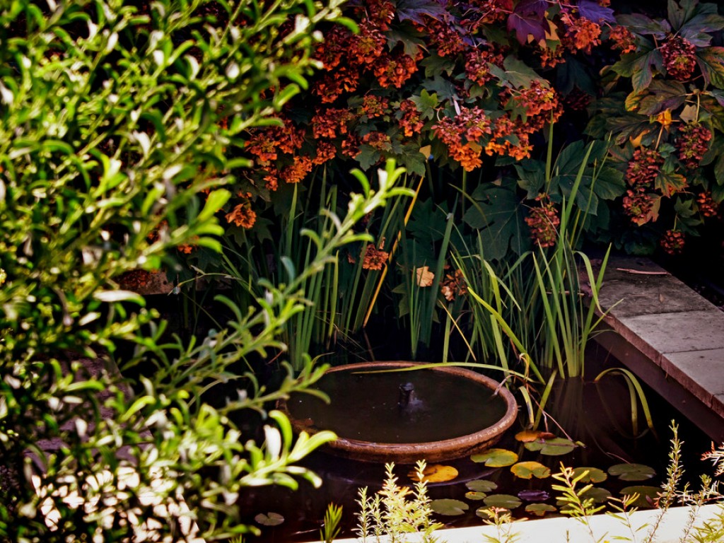 The garden is soft, with a beguiling, skilfully designed sense of the wild. The mix of exotic trees and shrubs includes viburnums, crab apples, birches, maples, japonicas, liquid ambers, elms and a variety of fruit trees. Underplantings of low maintenance perennials keep weeds at bay and open lawn areas create space and proportion. A paved terrace on the northern side of the house is perfect for outdoor dining and a bank of native plantings on the south provides protection.