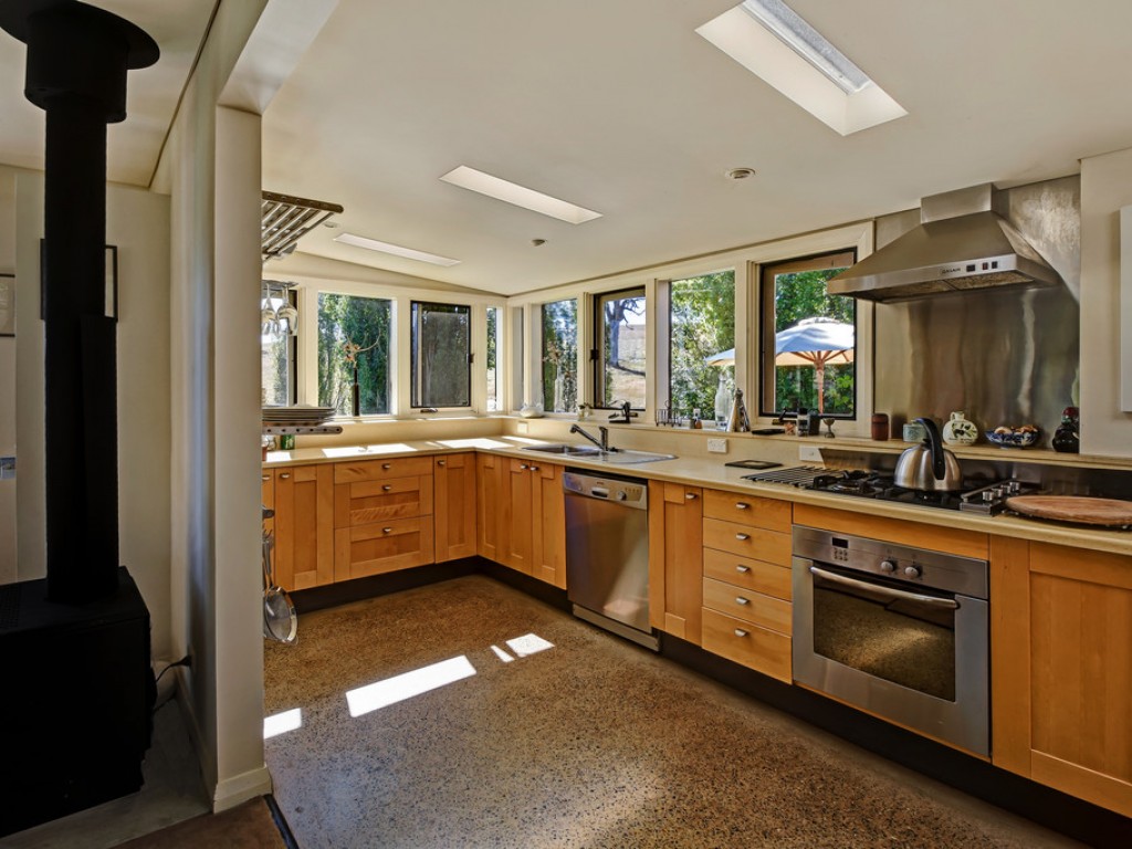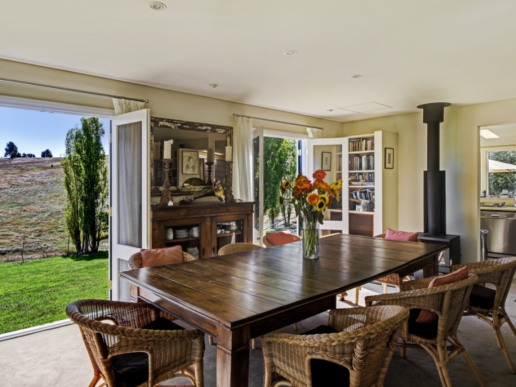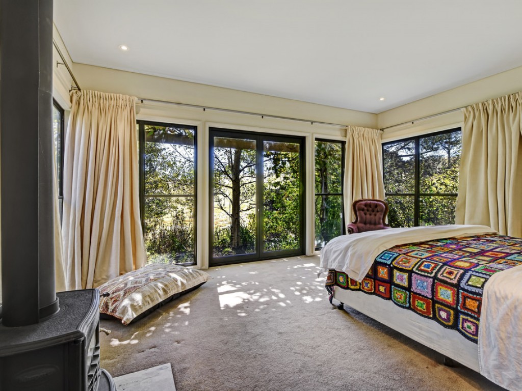 The creative, spacious home welcomes and charms, light-filled rooms with glorious views of the garden and surrounding countryside. The original cottage section is now a generous, open living, dining, kitchen space. Light the fire and bunker down in the winter or throw open the doors to the verandah and fresh, clean air on warm days.
