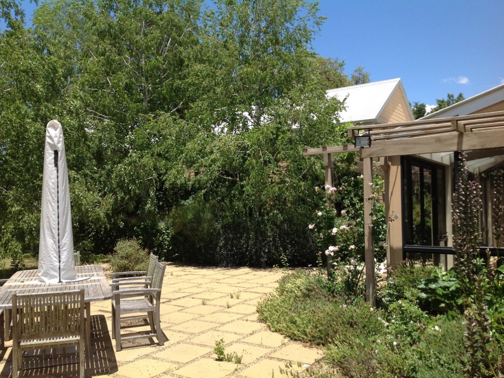 An architect-designed house, sympathetically repurposing the original building (a settlers' cabin), is set amongst a beautiful, perennial garden developed from an original plan by Michael Bligh. Inspired by Edna Walling, the garden flows seamlessly into the surrounding landscape through the use of parkland-style paddock plantings of both evergreen and deciduous trees.