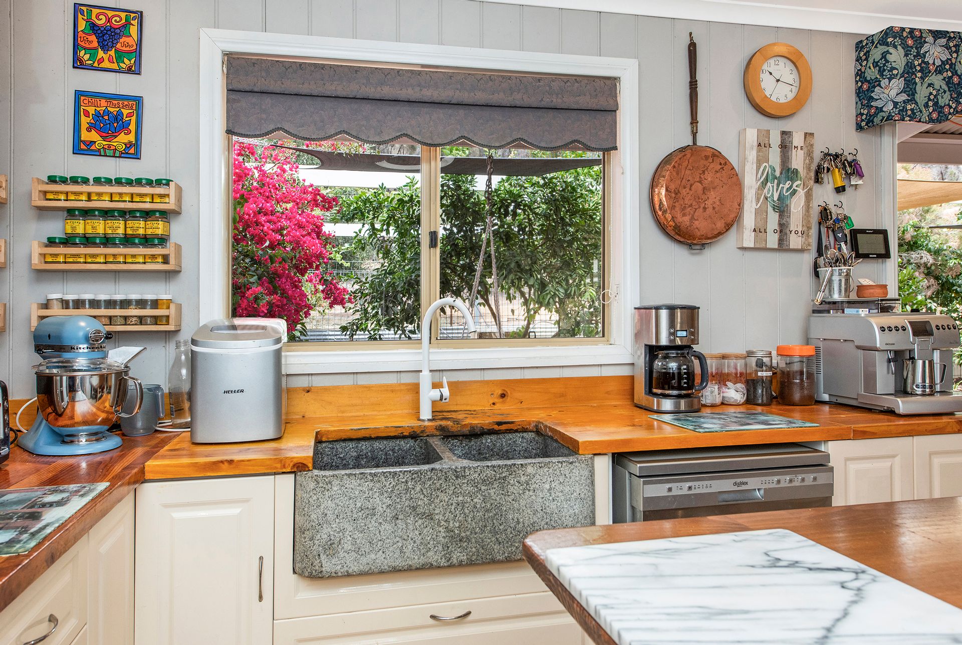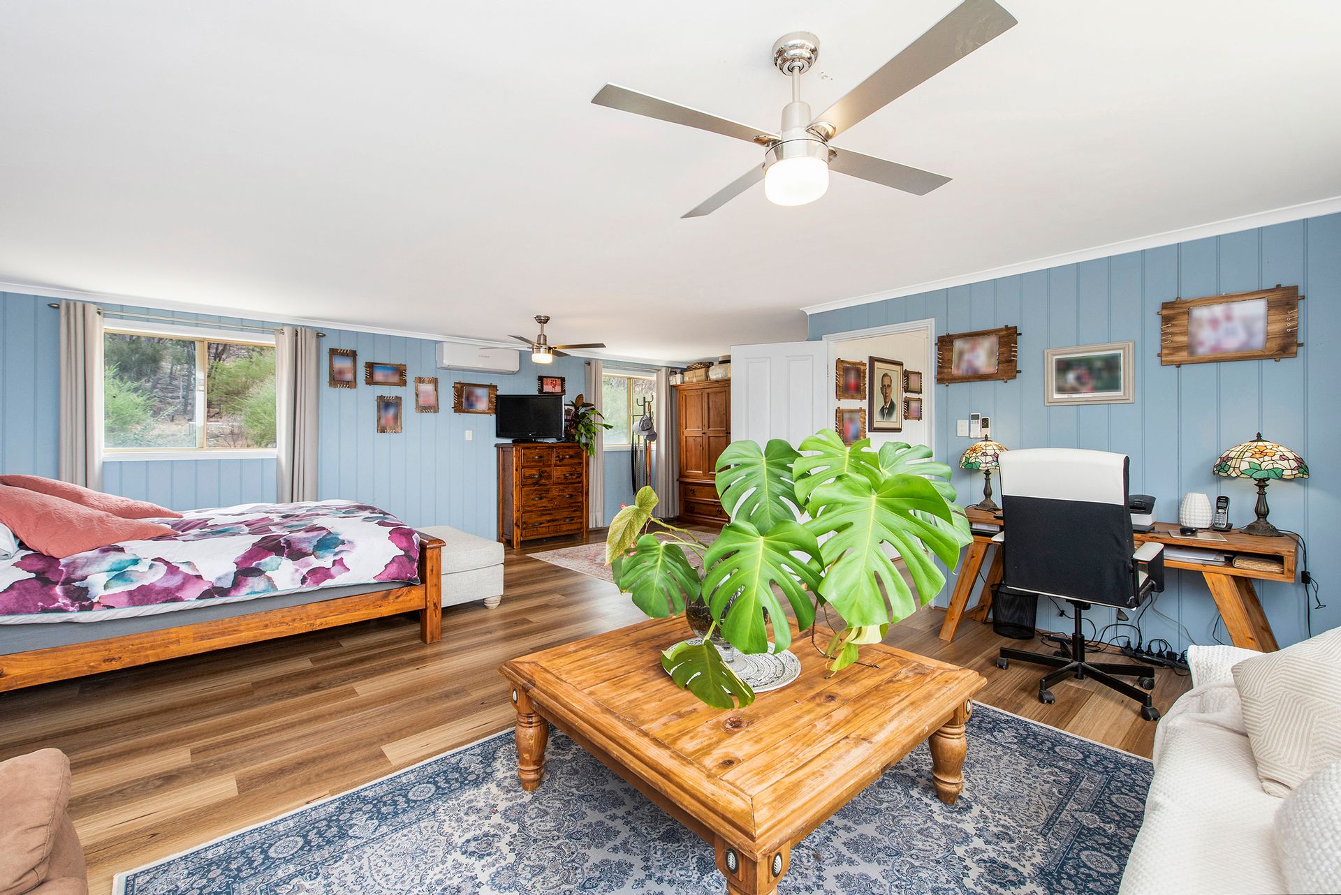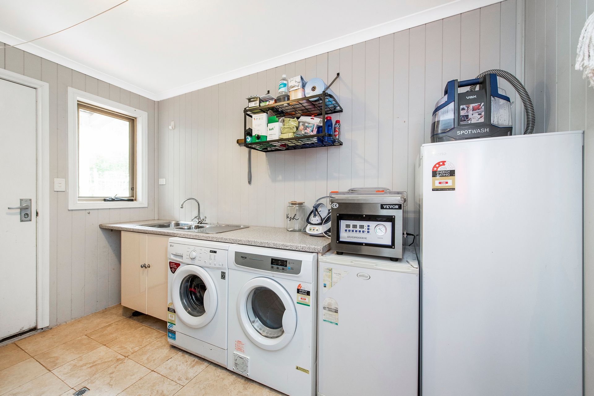 - 100yo barn door separates the wet areas from the living areas of home, main bathroom downstairs with shower over bath, large country laundry with folding bench space and large linen accessible from the laundry.