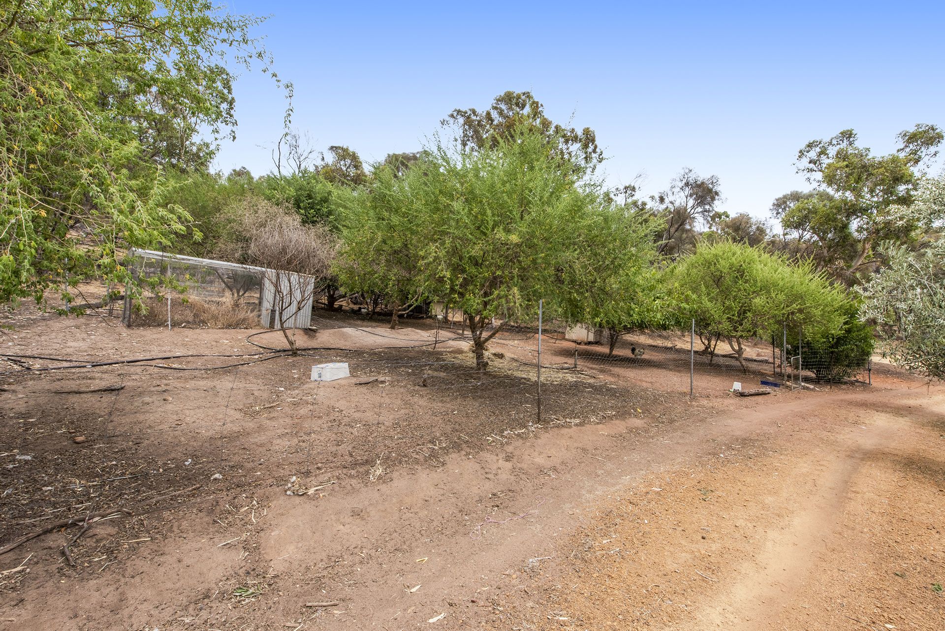 - The property has been used as a hobby farm and has an open air enclosure, with water trough and shelter, large chicken/rooster enclosure with shelter, additional hen shed enclosure for chicks, or baby ducks, fences paddock and free roam areas.