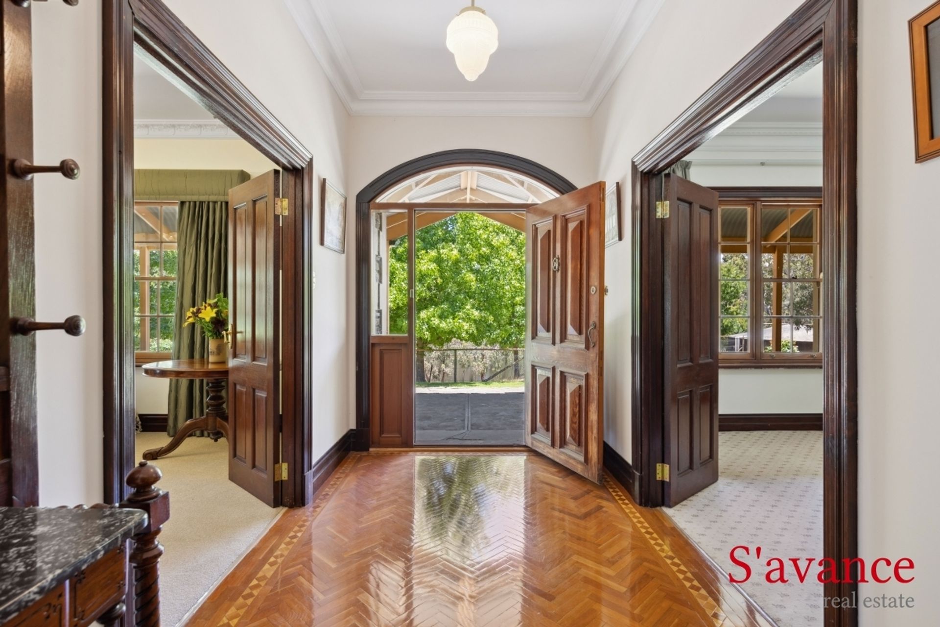 • Exquisite parquetry flooring to formal entrance and hall.