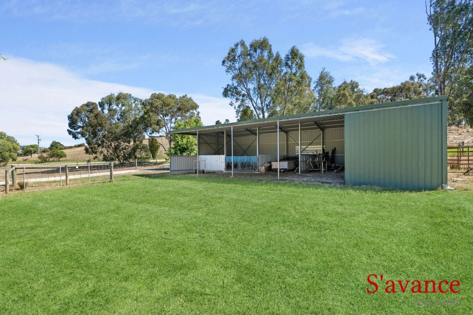 • Implement/hay shed, approx. 15m x 8m. Single phase power & part concrete floor.