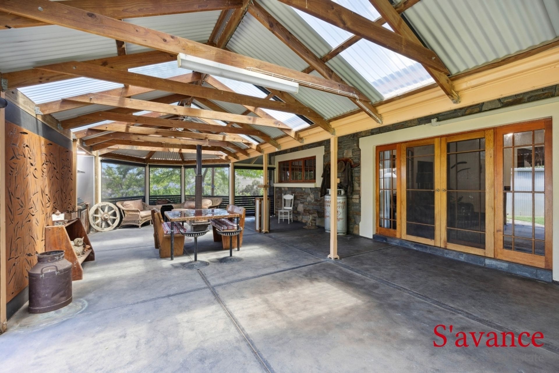 • Private, sheltered outdoor entertaining area. Concrete base & roll down blinds.