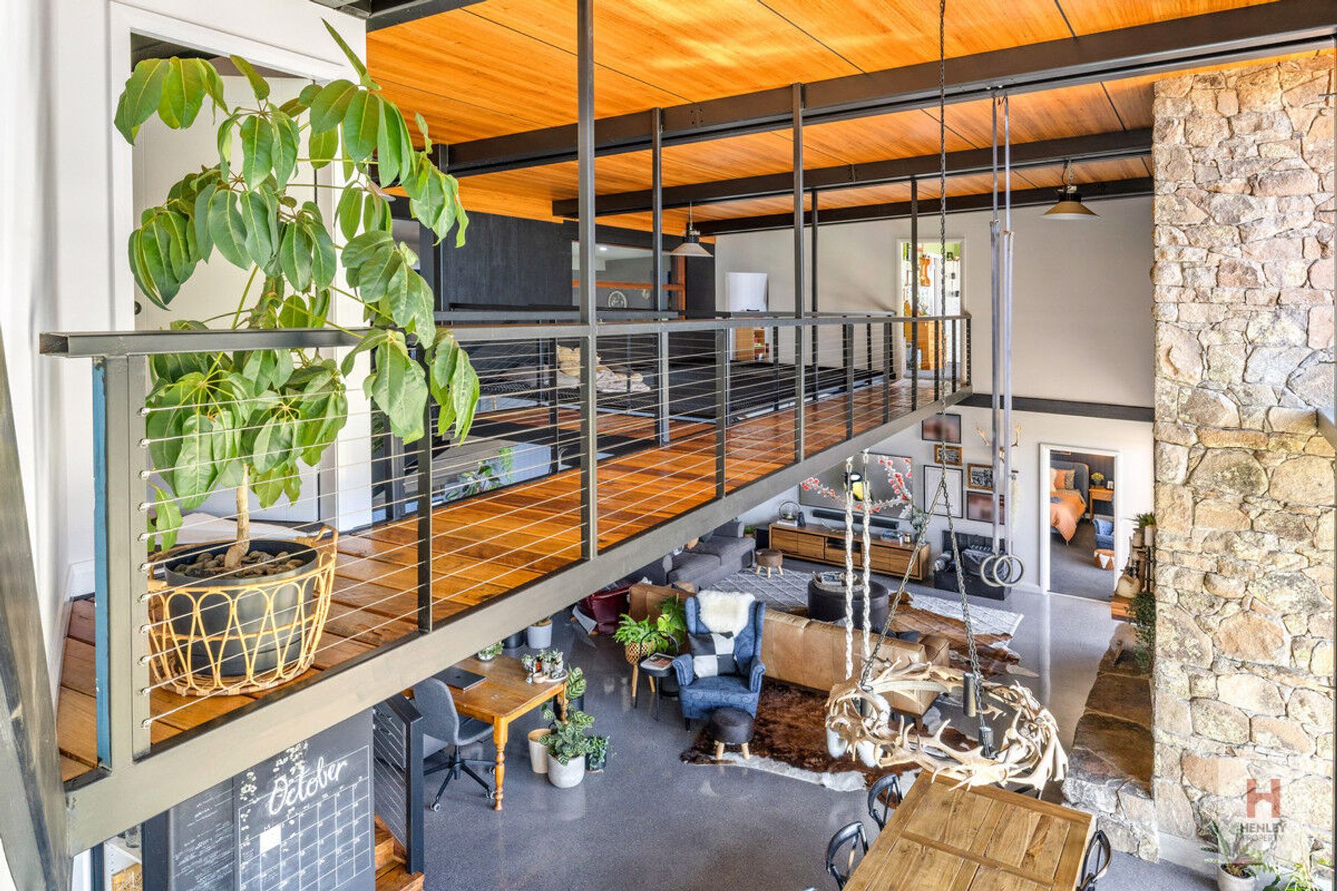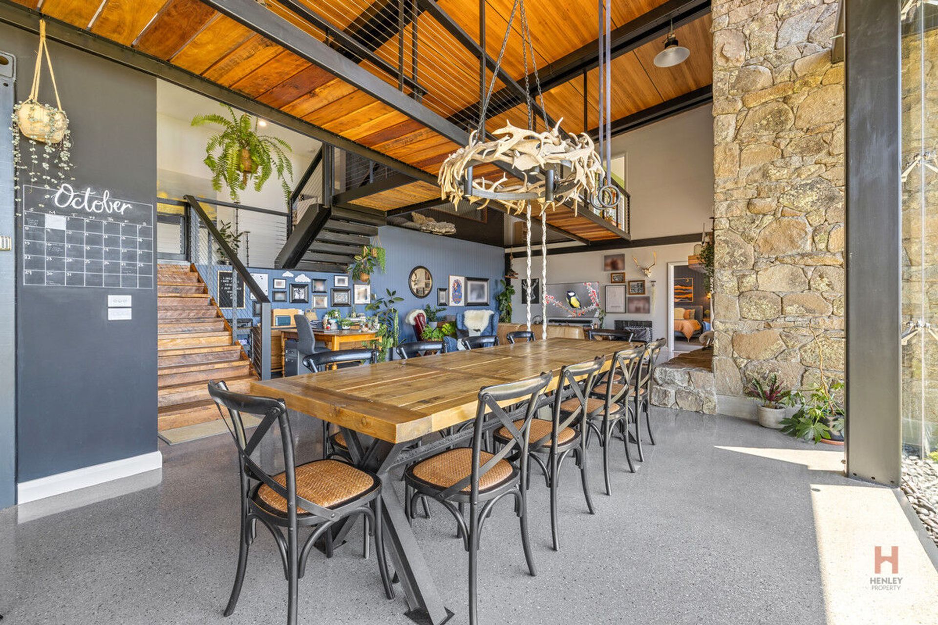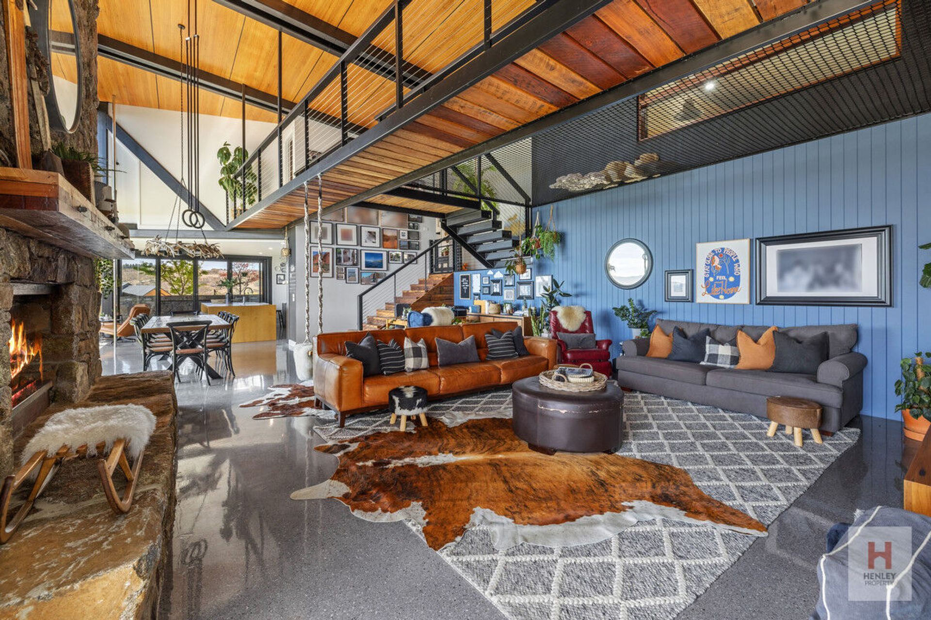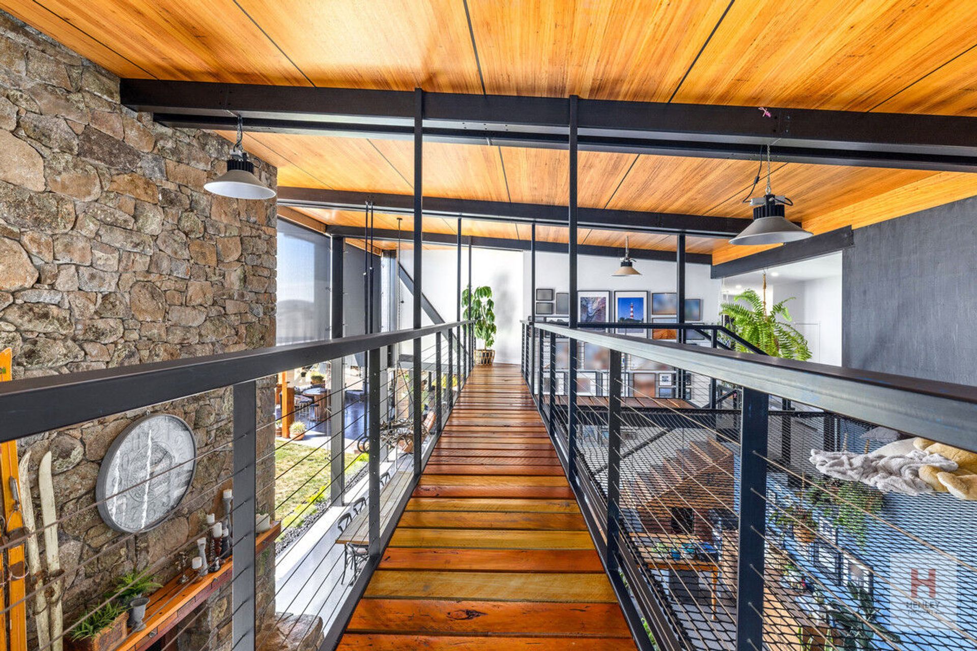 · Exposed metal beams sourced from mine