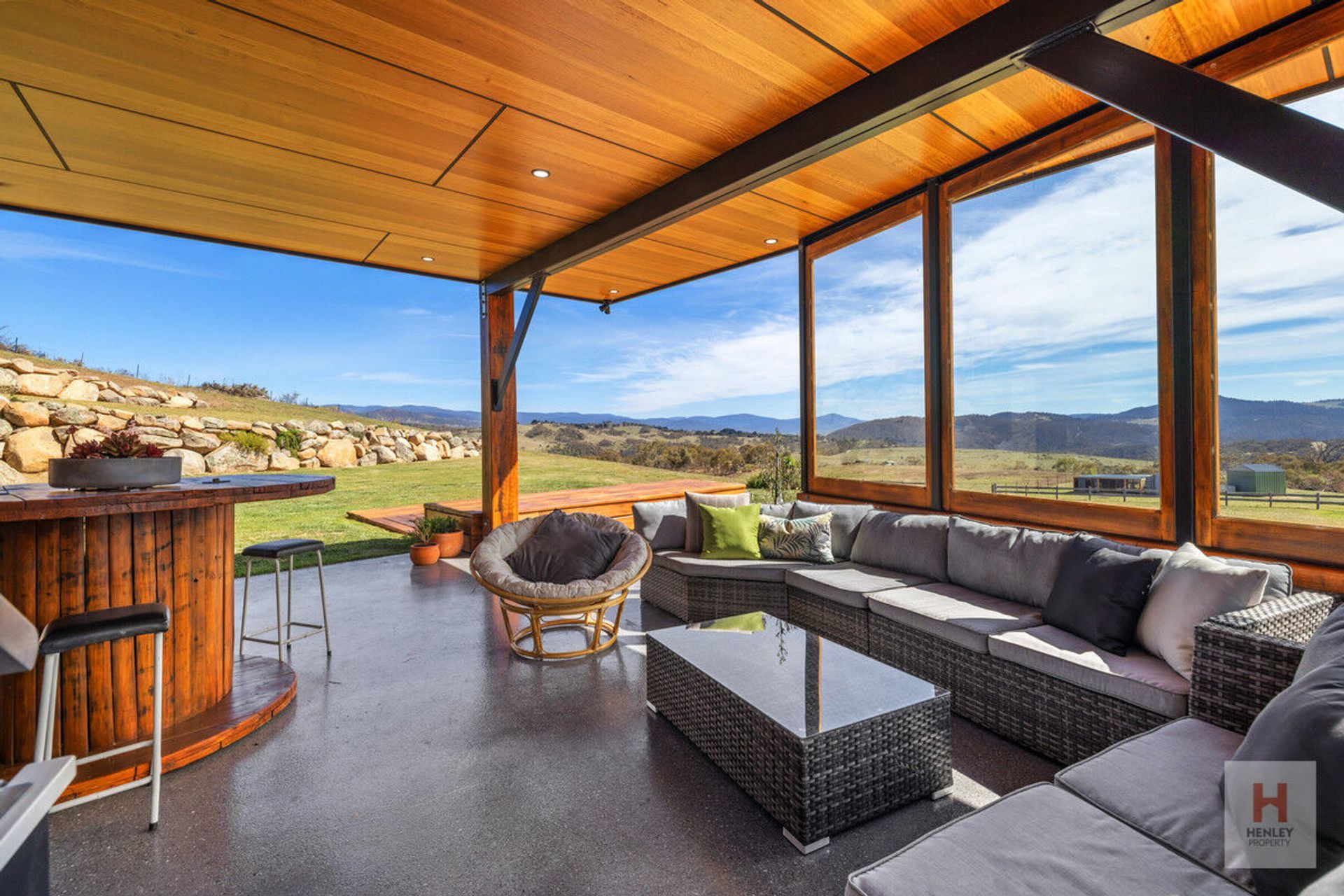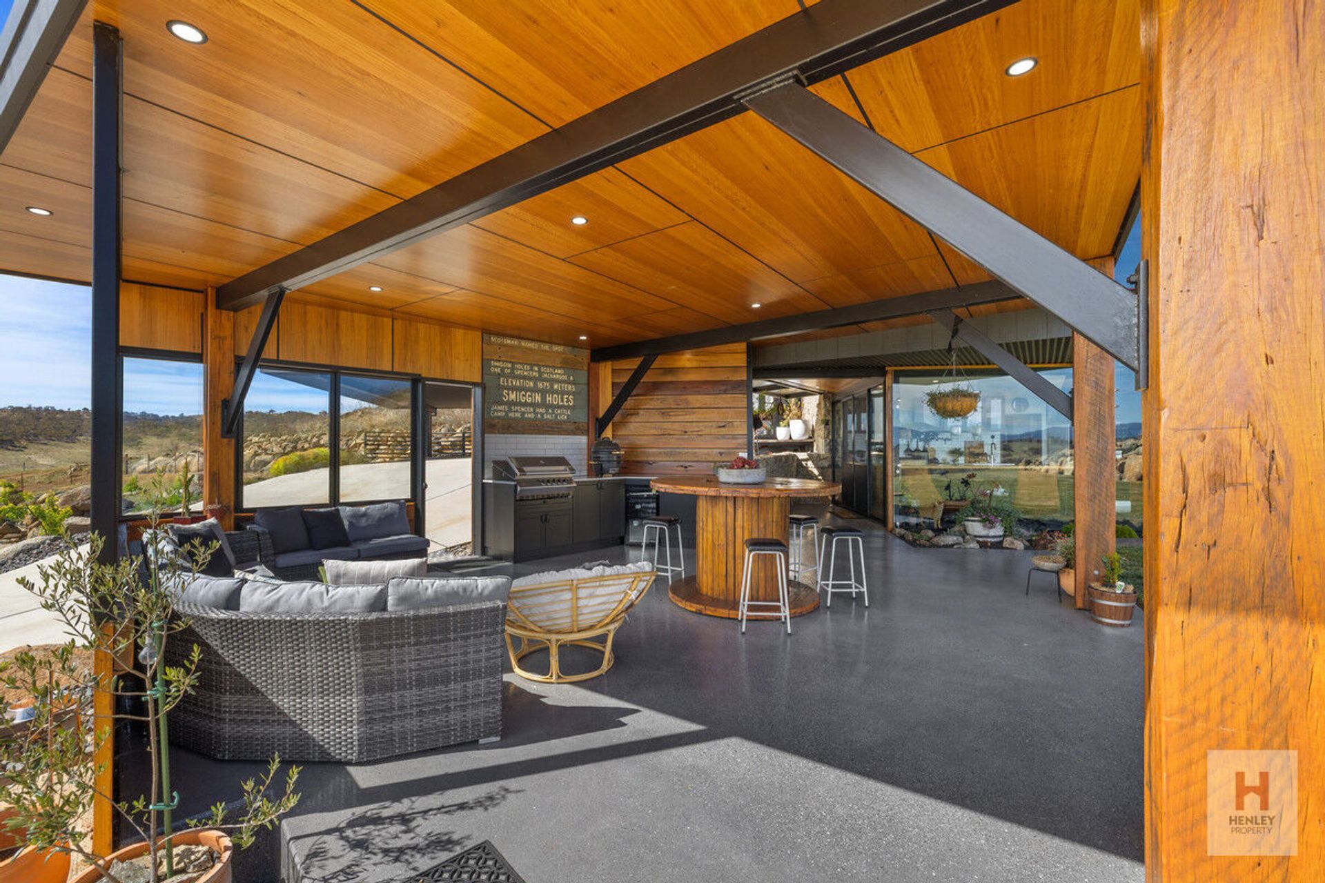· Partially enclosed patio with built-in BBQ, bar fridge and feature Smiggin Holes signage