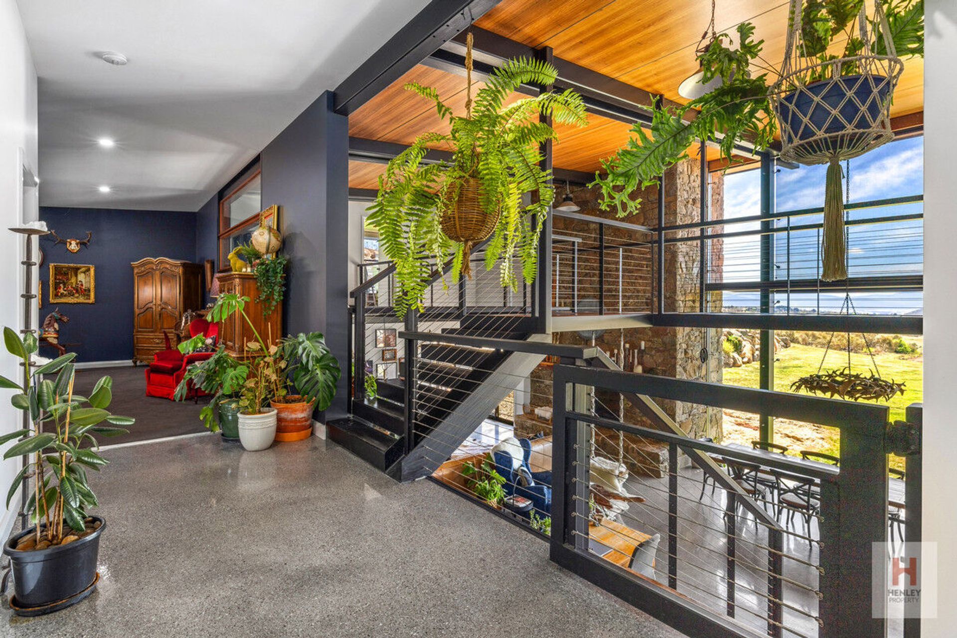 The floor-to-ceiling glass windows tying all the levels together ensure it is light and bright throughout, bringing the outside in with endless rural outlooks. The fireplace giving a nod to the local surroundings with stone sourced from the property adds that extra ambience of seclusion and grandeur.