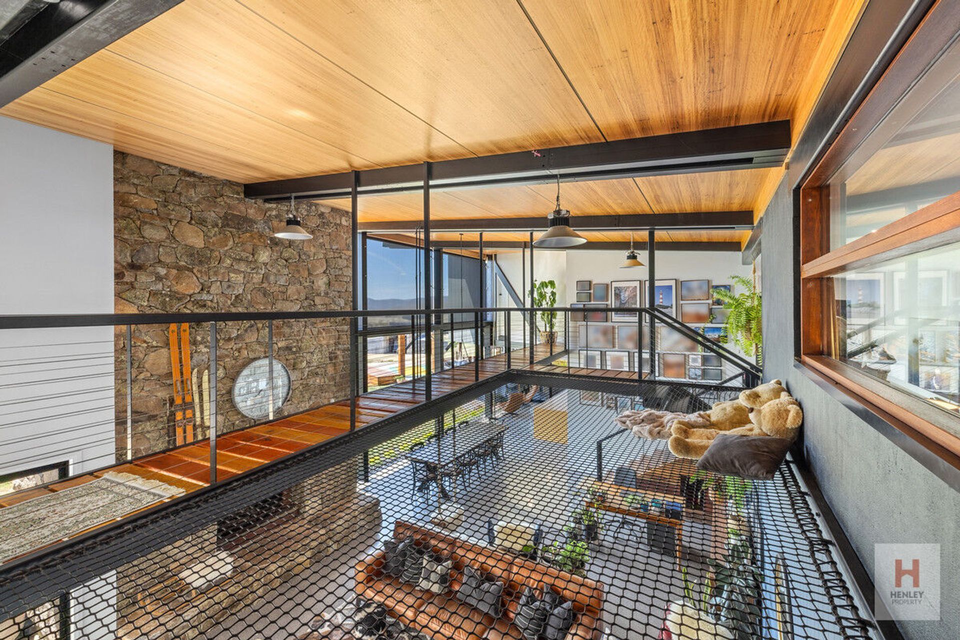 · Open plan living/kitchen/dining area with feature floor-to-ceiling windows and suspended netting