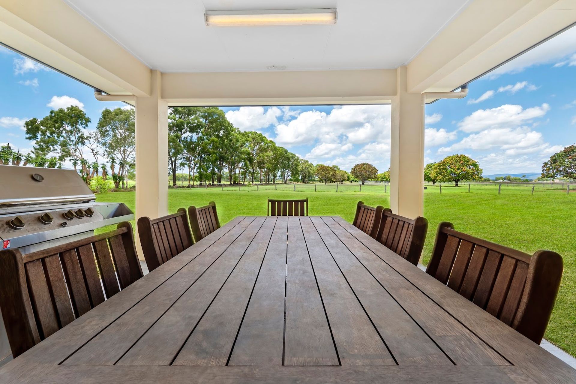 The land – ten acres (4.11ha) that are fully fenced with ringlock post and rail. Paddocks for everything. Mango trees (approx 150 of them) spread over the front and rear paddocks. The house fenced off for dogs or kids – ample room for a pool off the rear patio with views over the mango trees or horse paddock. Other fruit trees of mandarin, lemon, lime and macadamia sprinkled throughout and plenty of room for more.