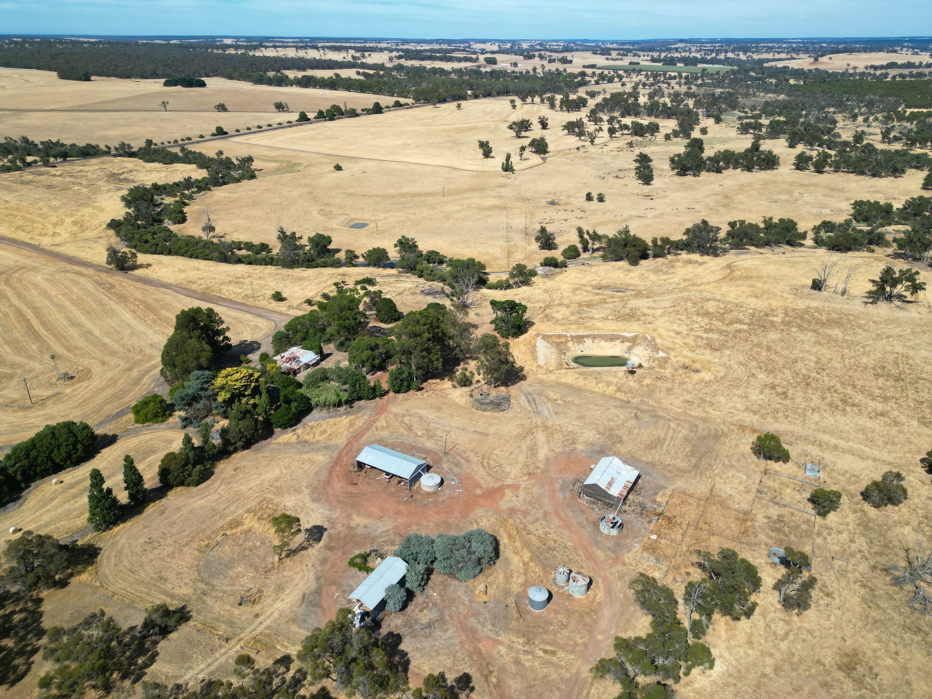 The farm is watered by a number of smaller dams and two reliable spring fed soaks. Infrastructure on the property is limited and mostly in poor condition but includes - small machinery shed/workshop, hay shed, shearing shed, storage shed and uninhabitable 4 x 3 original homestead.
