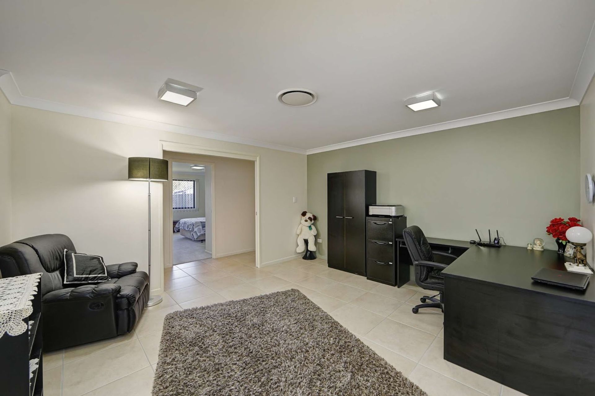 There are built in cupboards in both family room and 18m2 professional office. The office could be utilized as a fourth king size bedroom or media room.