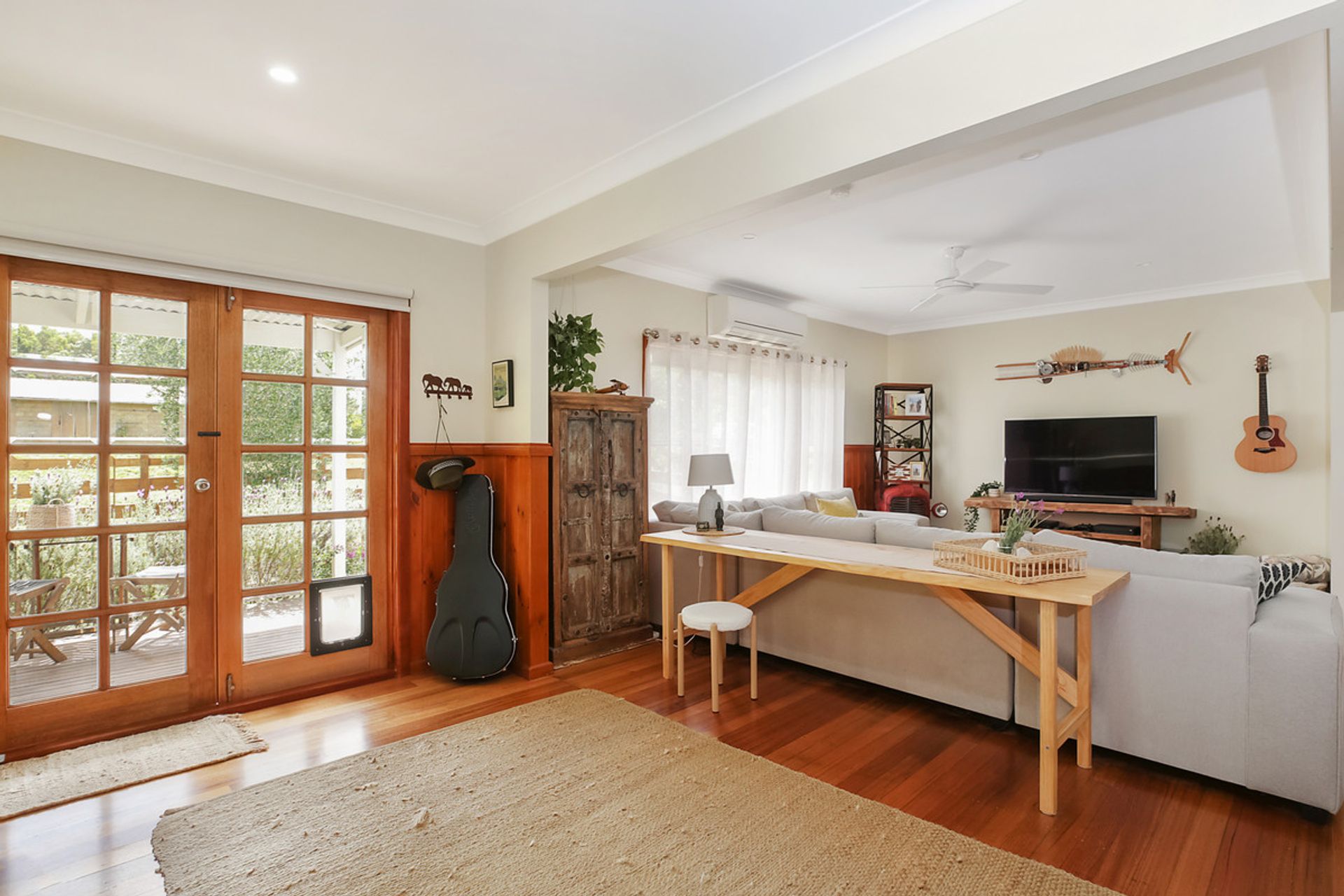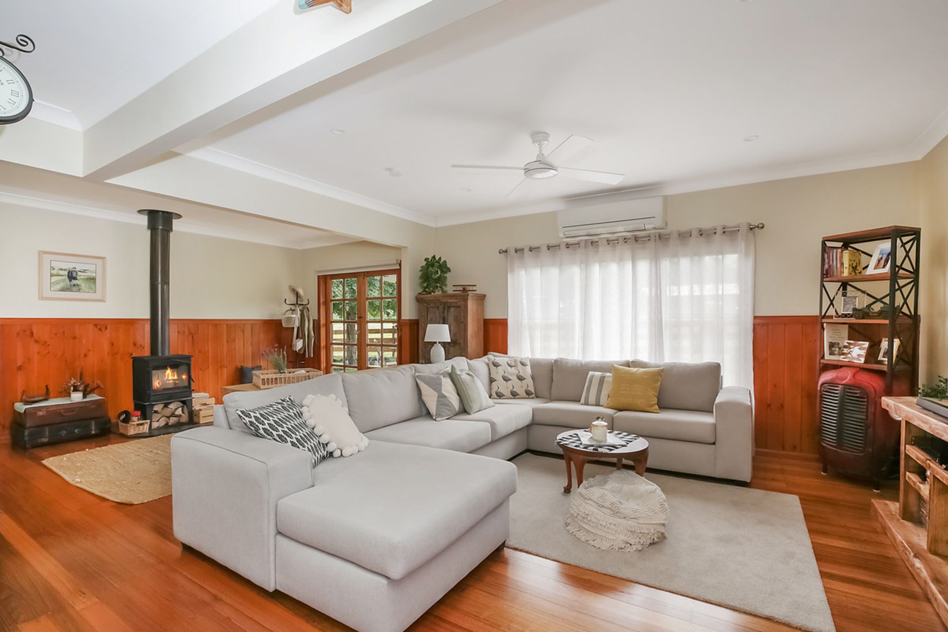 The heart of this property is a renovated 3-bedroom country home, where bedrooms with built-in robes provide ample storage. The stylish kitchen, featuring polished hardwood flooring, invites you to share memorable moments with friends and family. In the lounge, cozy up by the solid wood heater or enjoy the flexibility of the reverse cycle air conditioning. An additional living area adds versatility to your living space.
