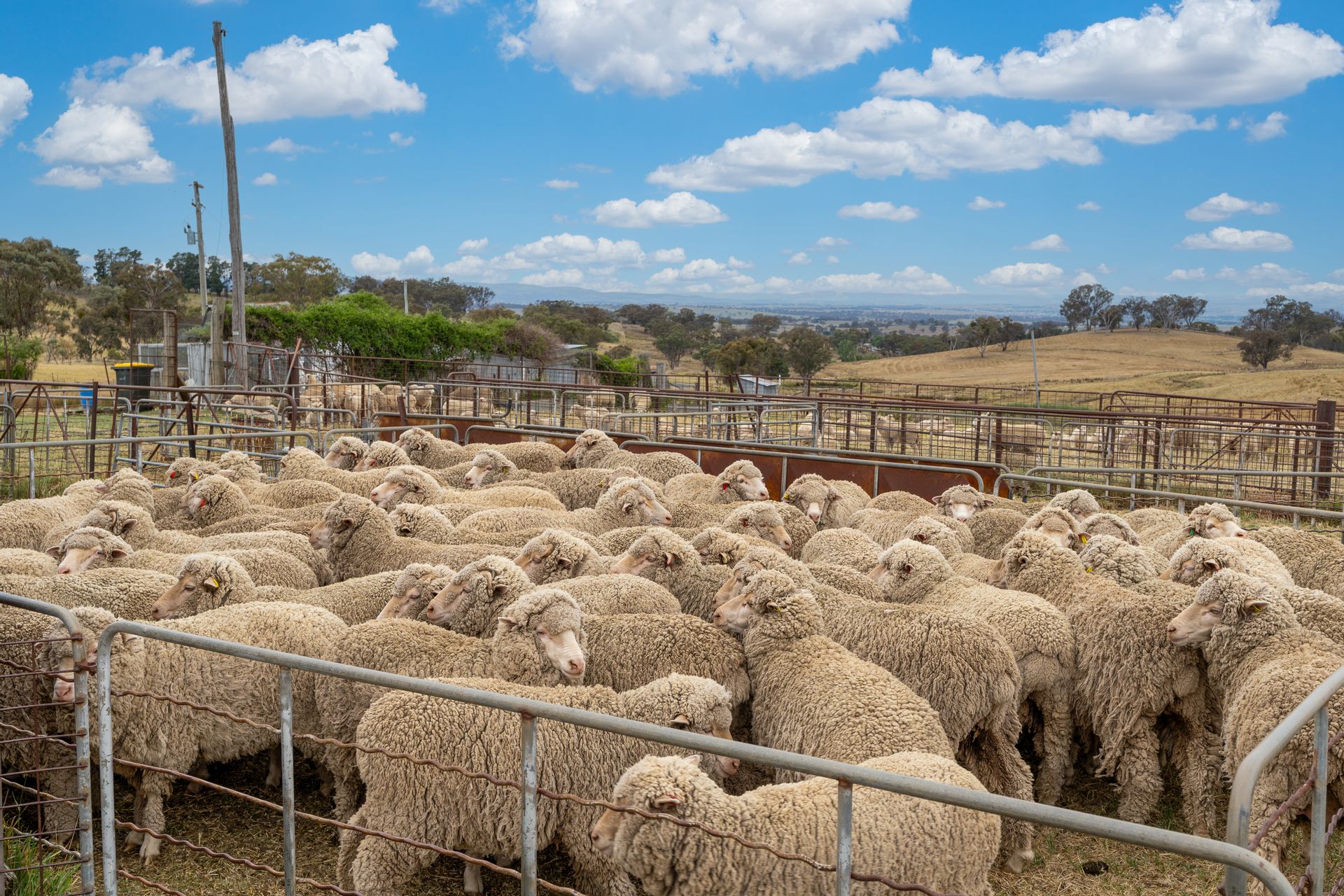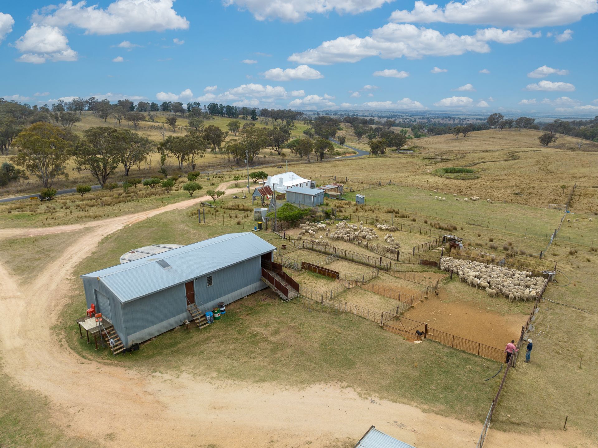 • Woolshed, sheep yards, hay sheds and machinery sheds.
