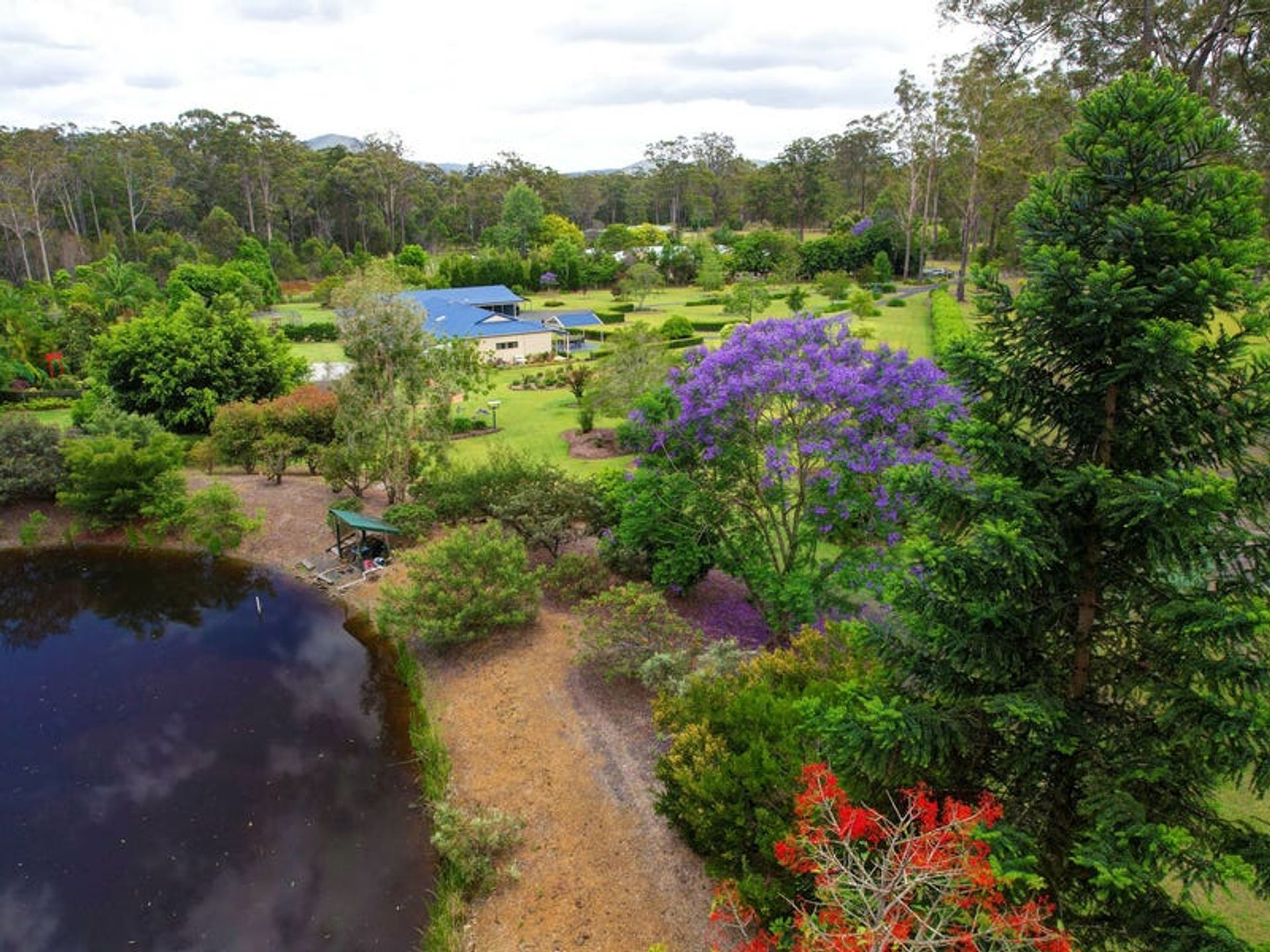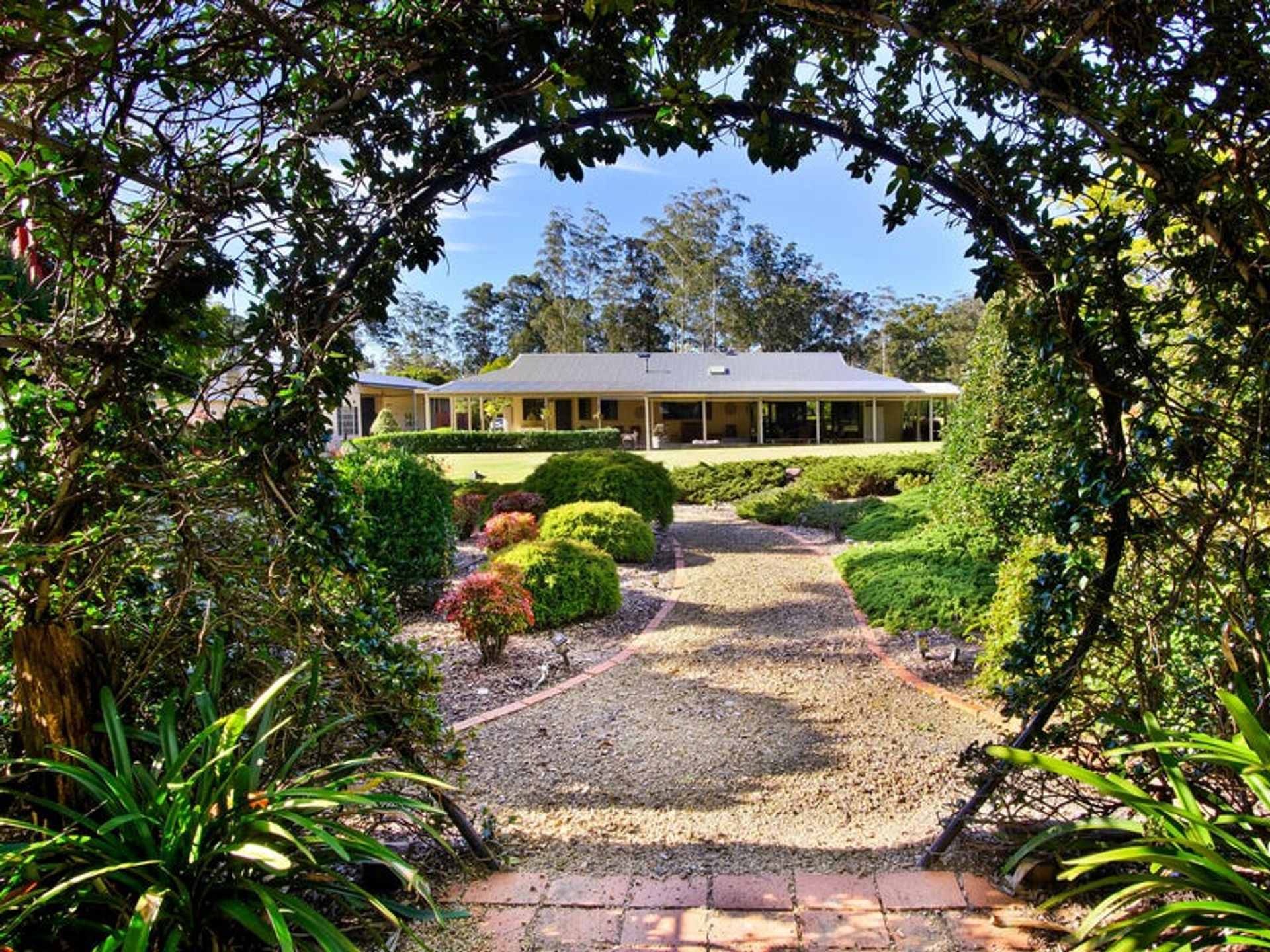 This is the most outstanding homestead, and we are so privileged to be asked to market this stunning property. It is one of a kind with multiple nationality themed gardens, a large dam for plenty of irrigation. In this backyard you can travel the world in a day. Enjoy the ambience of the green house and adventure over the bridge to the gardens of Japan, sip champagne under the arbor while watching the sunset. There is plenty of area for functions and a beautiful full-length veranda for the family gatherings. This property also offers a large workshop with room for all your equipment. There is just so much to offer with this property. The home is open plan living at its finest. It's light bright and fresh with three generously sized bedrooms with built ins and an ensuite to the main. Just picture yourself having a morning coffee in the front entertainment area watching the wallabies in the yard.