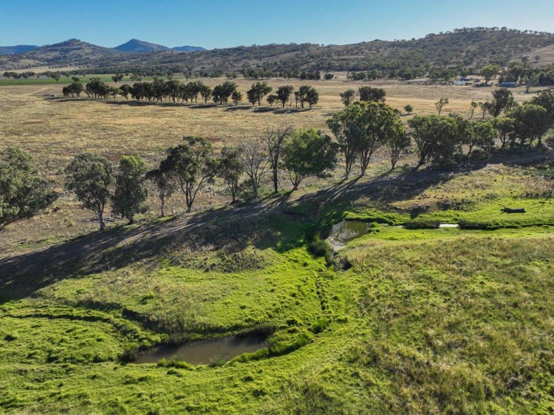 Water resources are a feature with the Property enjoying 1.4* kilometres of double frontage to Big Jacks Creek, two approved wells with access to Liverpool Ranges Basalt and Gunnedah Oxley Basin groundwater sources. A stock and domestic well with submersible electric pump supplies the home and troughs. The Property benefits from a reliable annual average rainfall of 691* millimetres.
