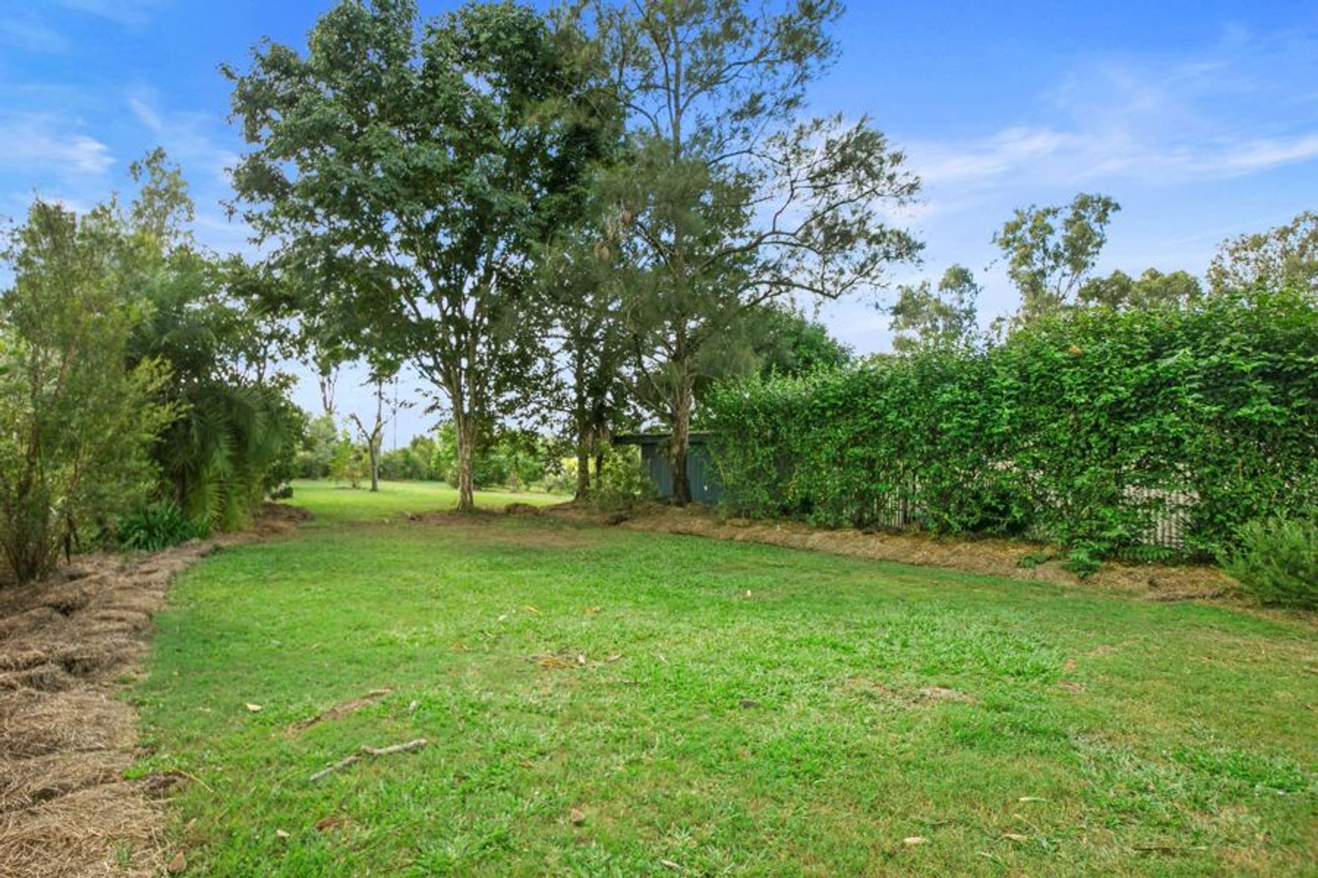 A sturdy shed, perfect for sheltering your trusty vehicles and cherished toys, stands tall on the property. Multiple animal pens and a collection of raised vegetable gardens add to the homely, rural feel, and established fruit trees dot the landscape, offering a taste of nature's bounty.