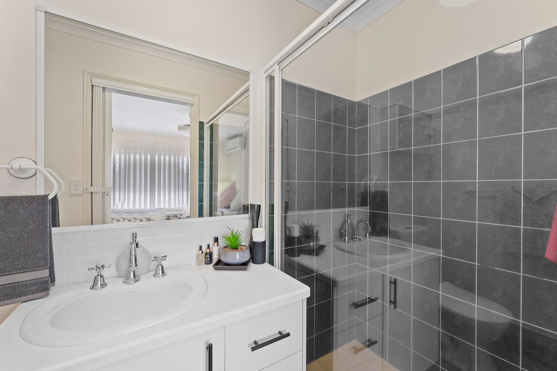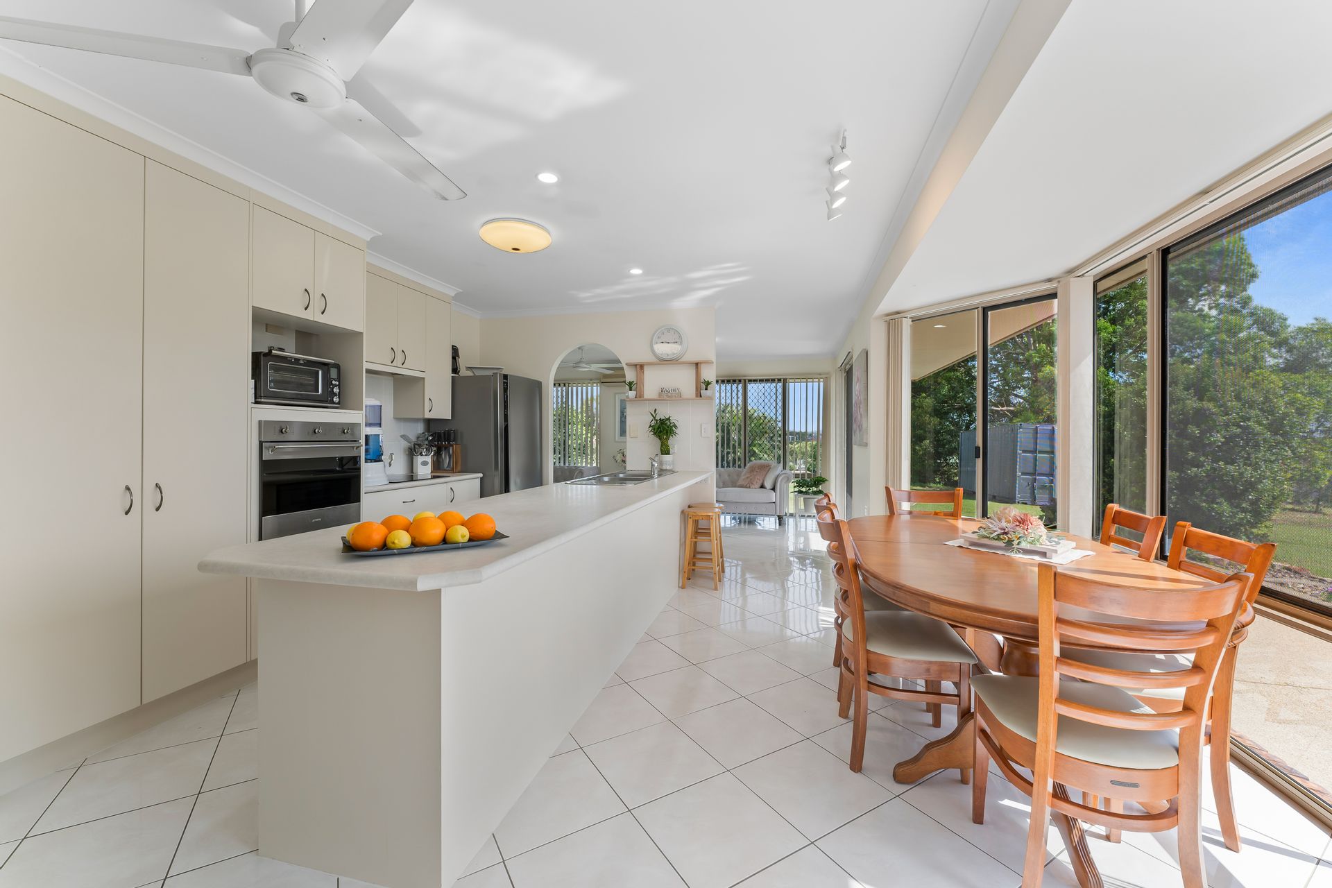 • Bedrooms 2 & 3: Thoughtfully designed with built-in robes, ceiling fans, and large windows framing scenic views of the entertaining area and rear gardens.