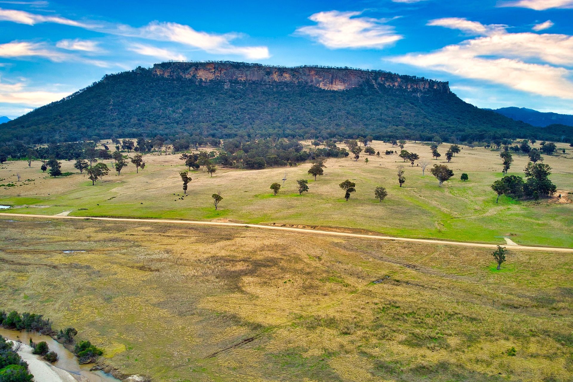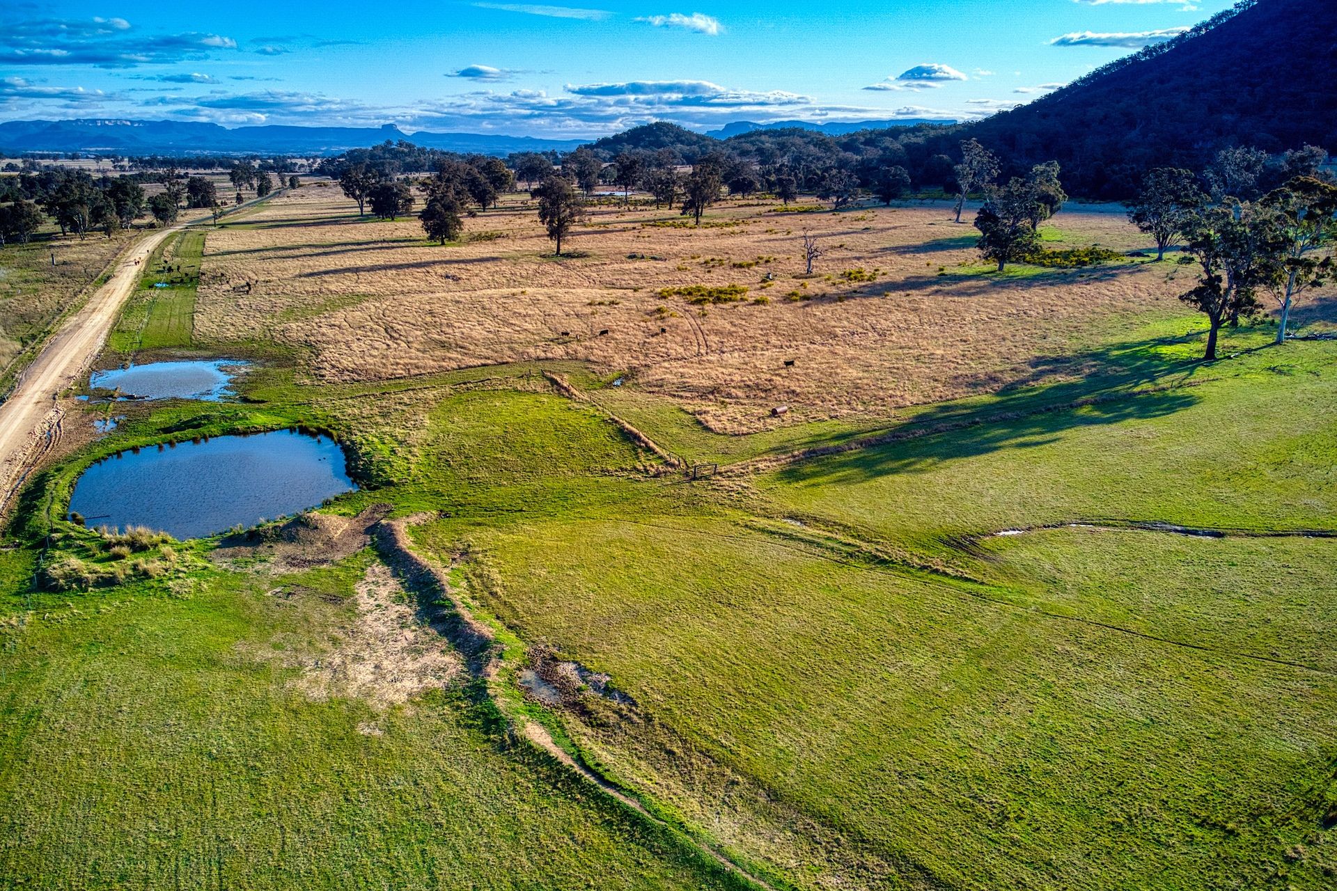 73.22 ha (180.93 acres) of elevated grazing land, 50% arable and dotted with huge trees of Kurrajong, Iron Bark, Eucalyptus Gum, Black Wattle, Box Gum etc.