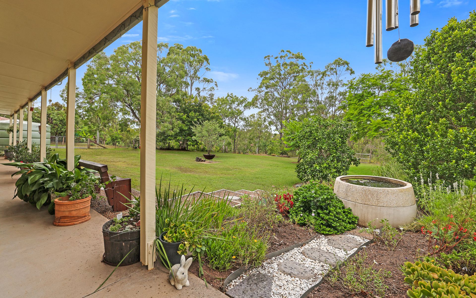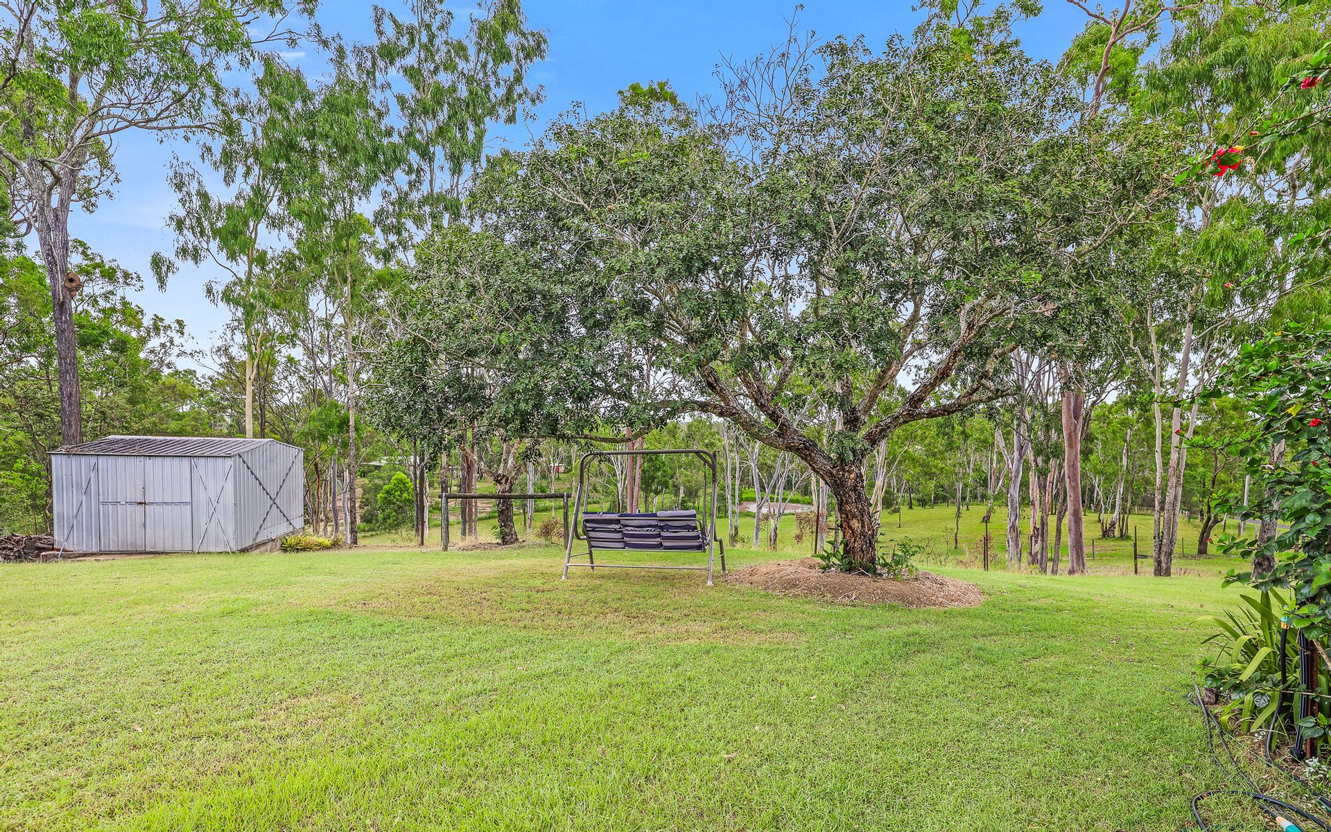 The 5-acre block is mostly cleared, leaving plenty of shade but room for the animals to run and enjoy. The 5 acres is separated into 3 paddocks, the house pad, the grazing pad, and 1 large paddock with a dam making the outlook from the house pad an enviable view. Surrounding the home is gorgeous landscaping meaning you can just move in and enjoy your personal oasis retreat.