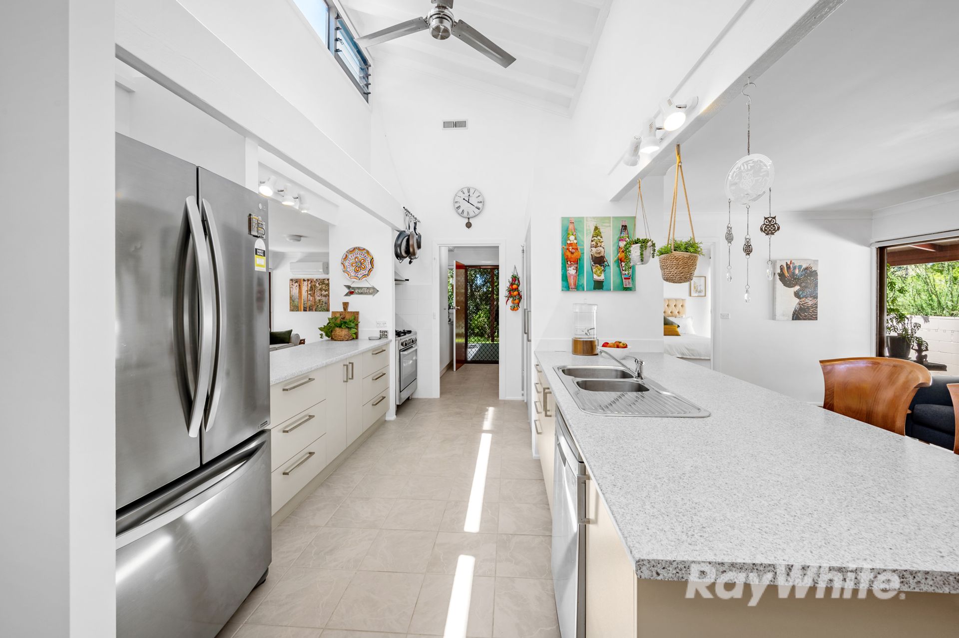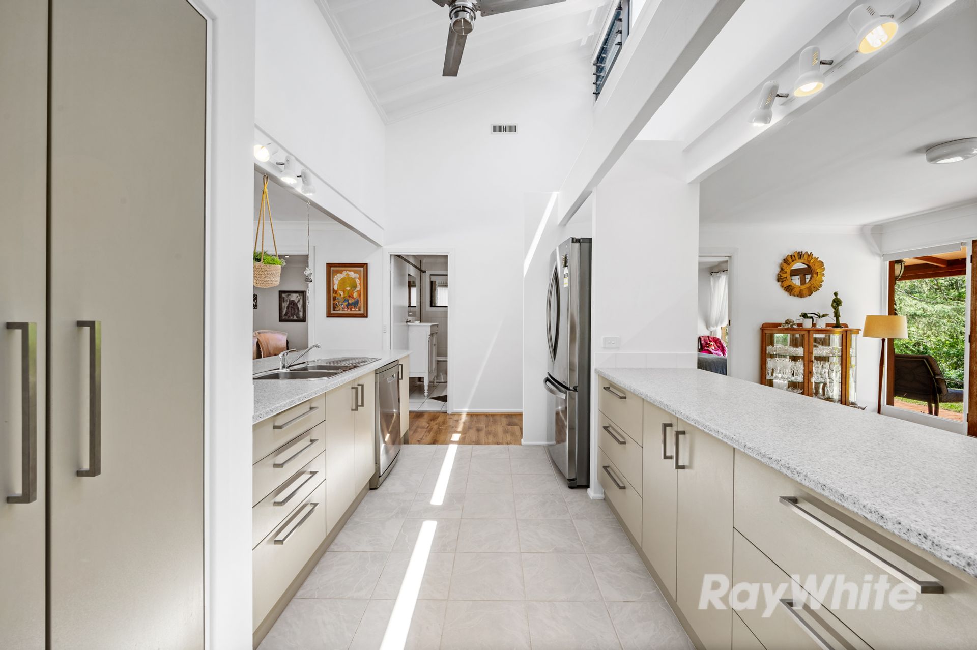 · Big galley style kitchen with gas cooktop and electric oven, pantry and dishwasher.