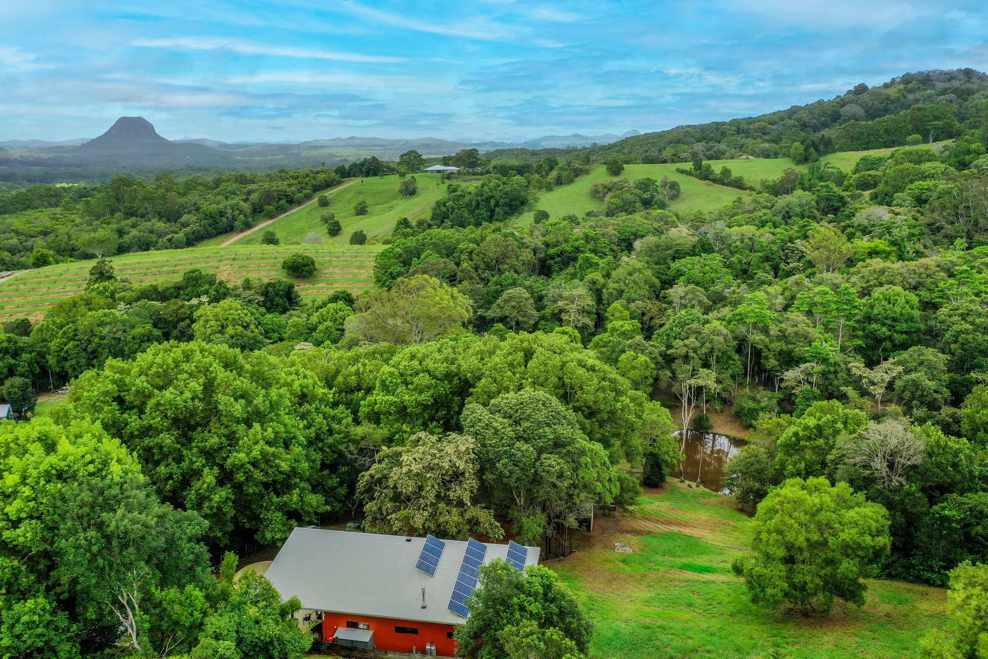 The top of the block enjoys amazing views to Mount Pomona (Cooroora Mountain) and would be an ideal spot to build a pole or terraced home as there is grid power to this area and a driveway already in place.