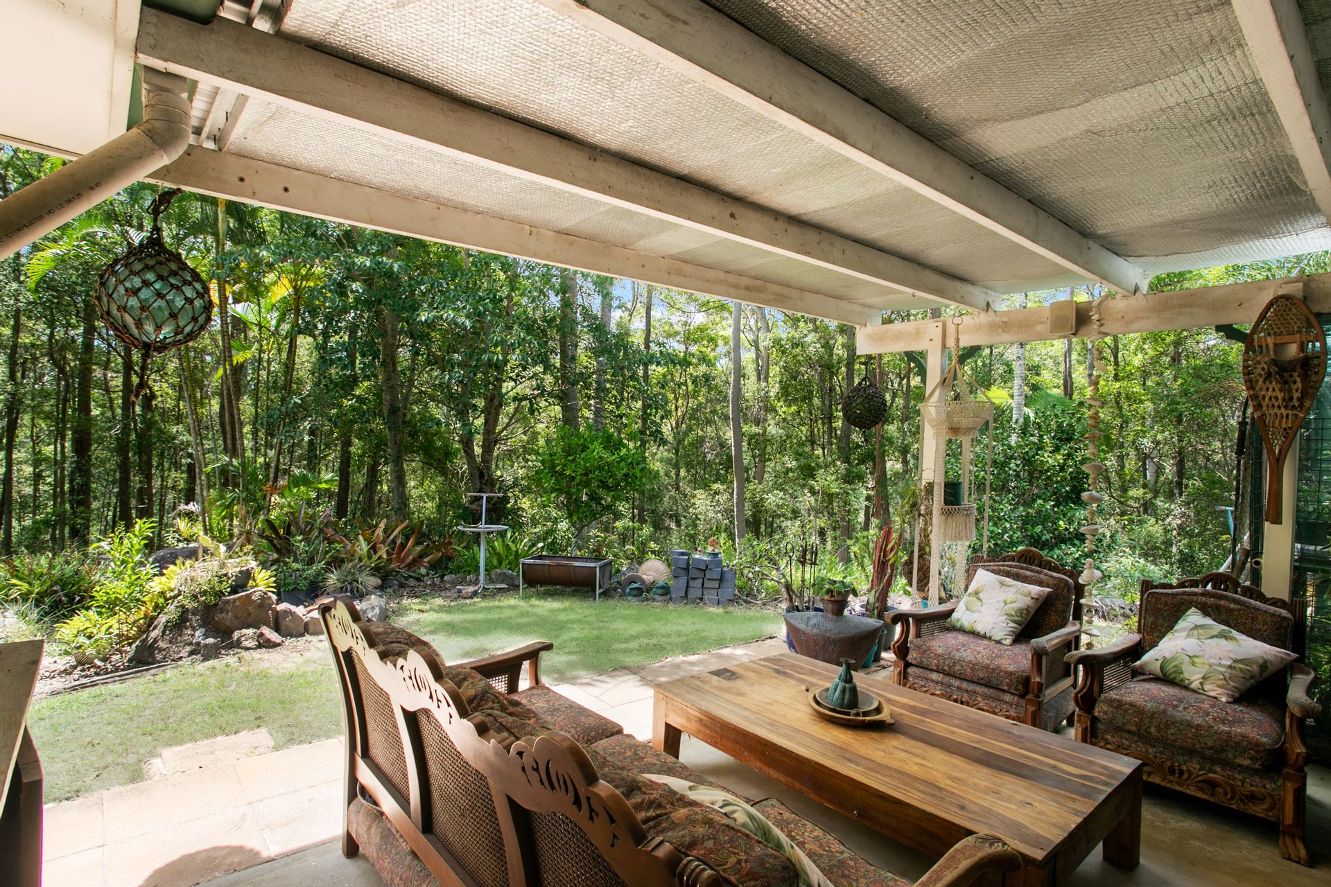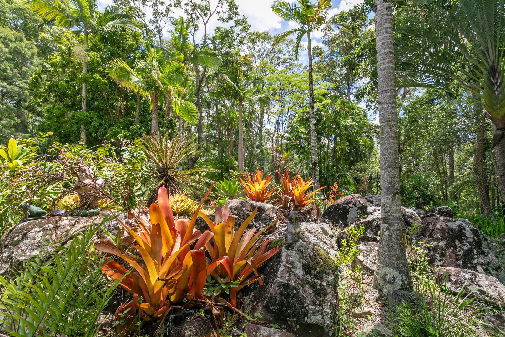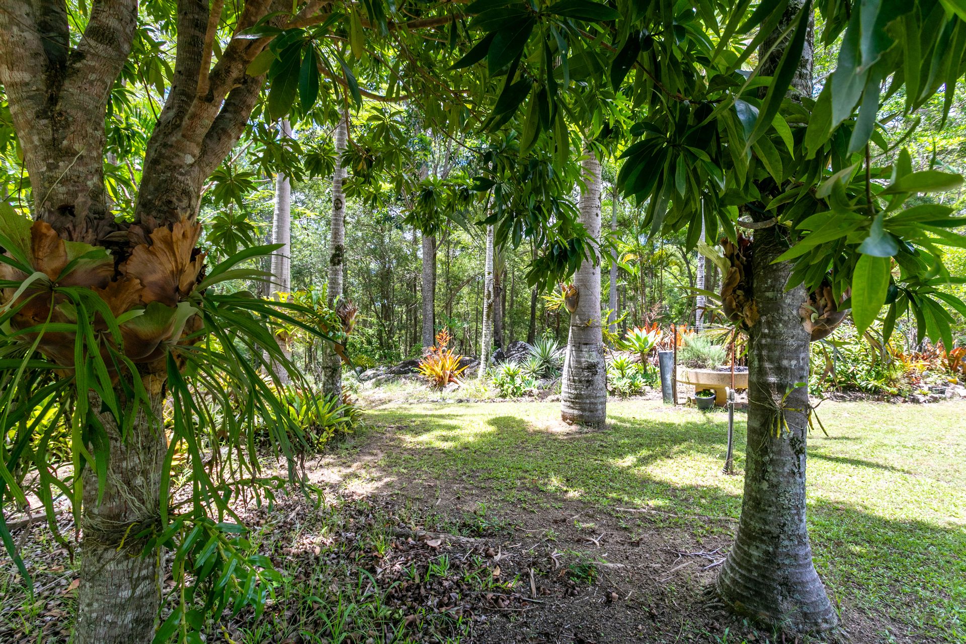 The gardens really 'pop' - a mixture of native and tropical including eucalypts, cycads, staghorns, bromeliads, palms, mango trees and colourful flowering shrubs; it attracts birds, bees, butterflies and all things bright and beautiful. It's a hub of green, a sanctuary of calm.