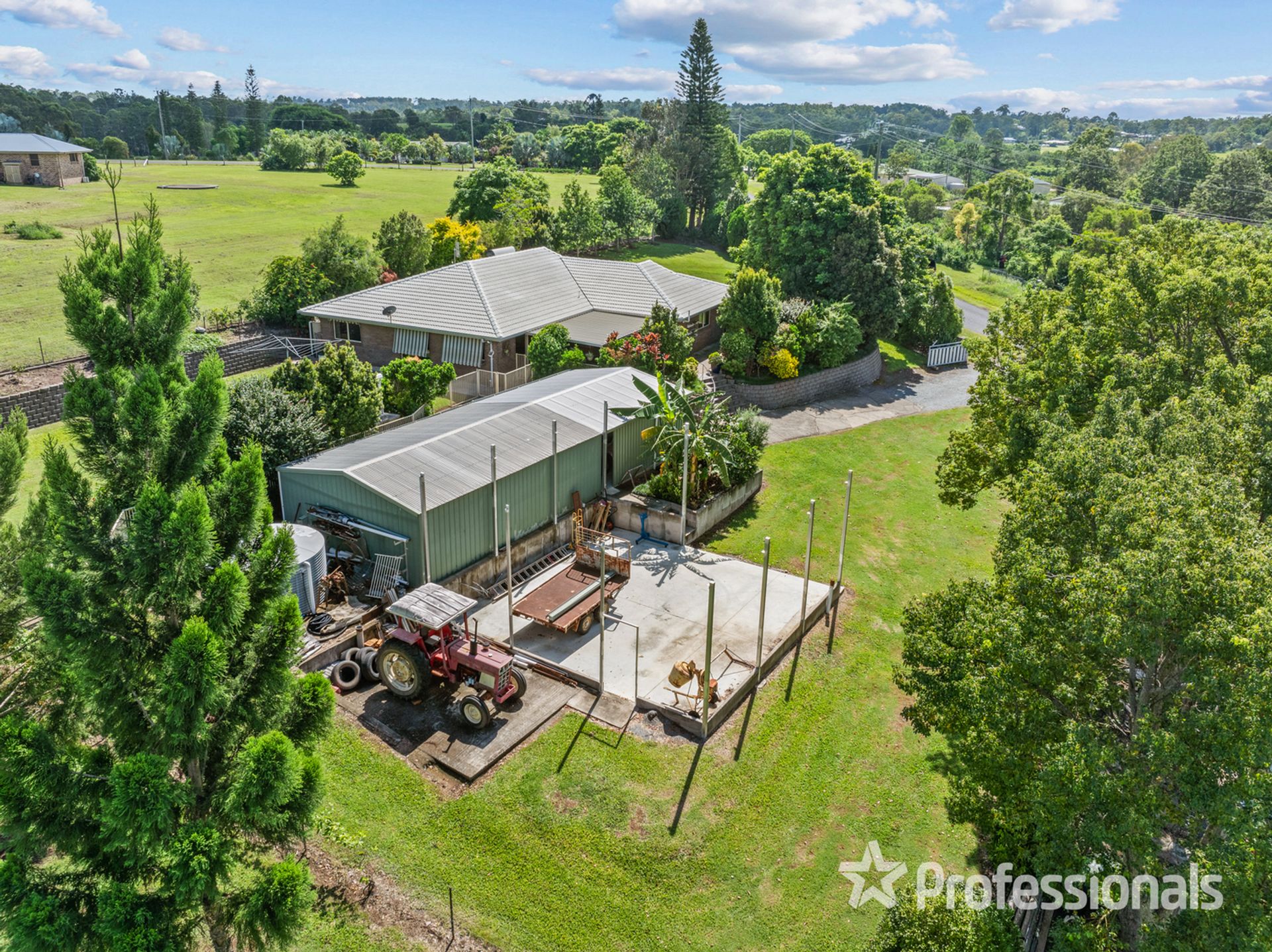 • Additional front skillion to main shed and side 8m x 8m concrete slab, ready to close in as you please with high clearance