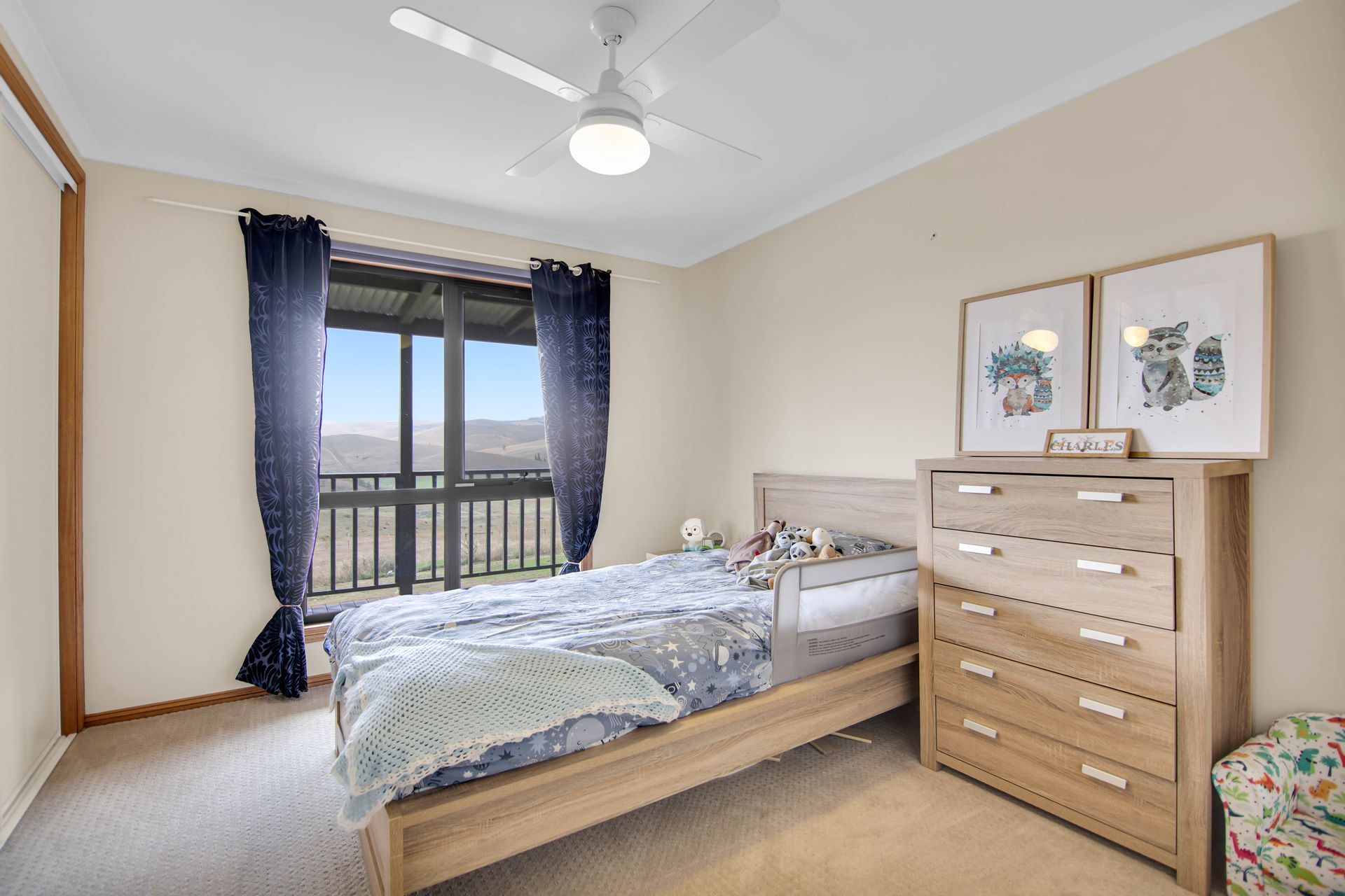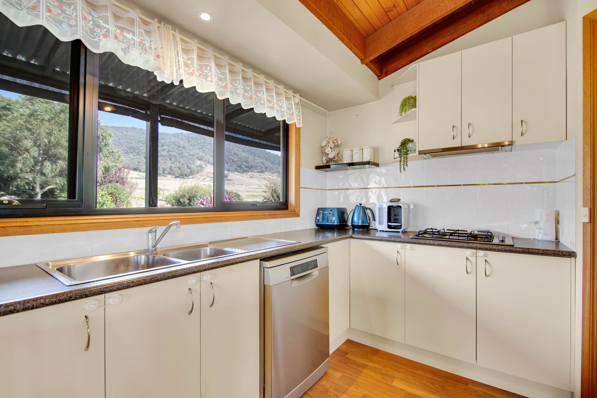 Presented nicely, the home is well insulated and has double glazed windows and doors and offers three good sized carpeted bedrooms, ceiling fans and built in robes, with the master boasting a walk-in robe and an ensuite. A nice open plan kitchen with a gas cooktop, electric oven, and dishwasher and that leads into the dining/lounge area with a free-standing wood heater and ceiling fan and sliding door exiting out to the elevated veranda on the Eastern side capturing the remarkable district scenery and the Livingstone Creek below. The central bathroom has a bath, shower and vanity, a separate toilet, there is a practical laundry, and good quality floor coverings are just to name a few treats the home has to offer.