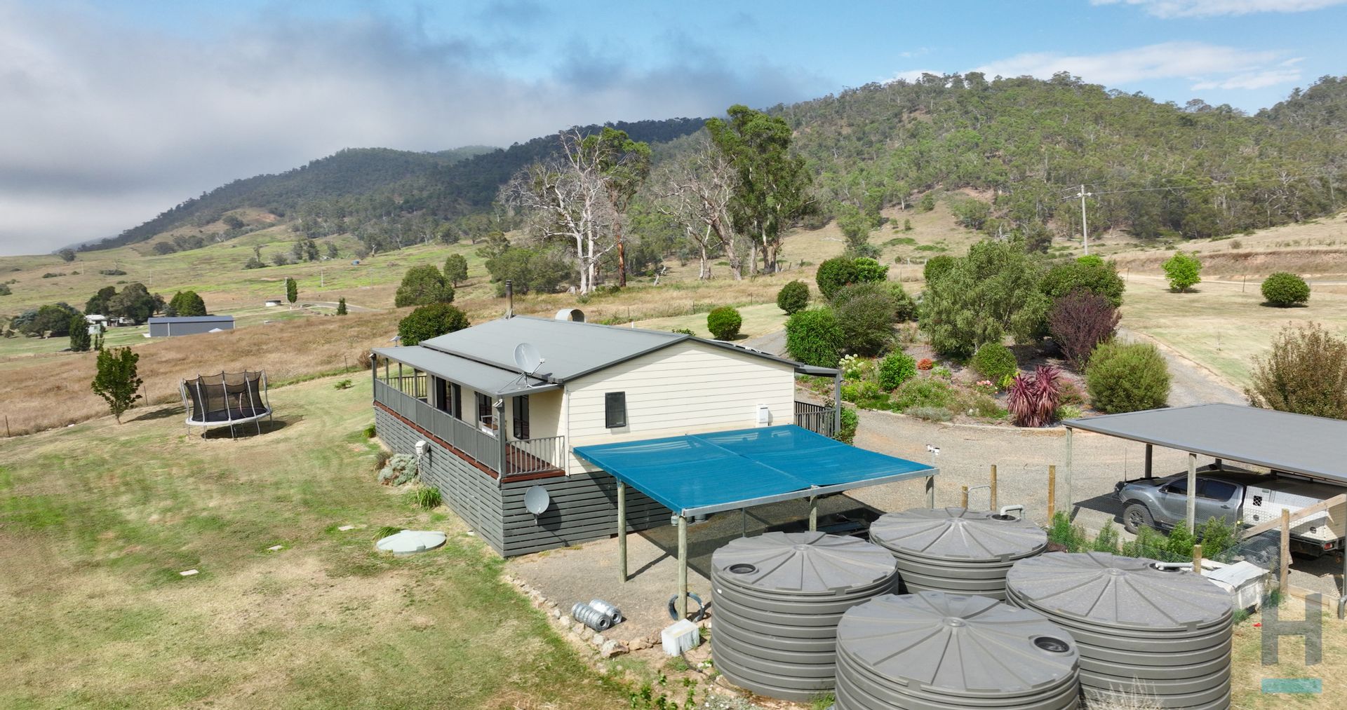 The home has an undercover carport and is connected mains electricity, is serviced by a septic system, has a small garden shed and a selection of four large poly water tank collecting *20,000 gallons of rainwater for the home, garden, and grounds. The home boasts a solar feedback system *2.4kw assisting to offset electrical living costs. The title land size is *4 hectares / *10 acres in size and represents the opportunity for someone to have a selection of animals. Adjoining the property and declared in the available vendor statement are two agricultural licence leases transferable at a successful settlement, providing an additional land area of *1.2 Ha and 0.4Ha totaling *1.6 Ha / *4 acres in size.