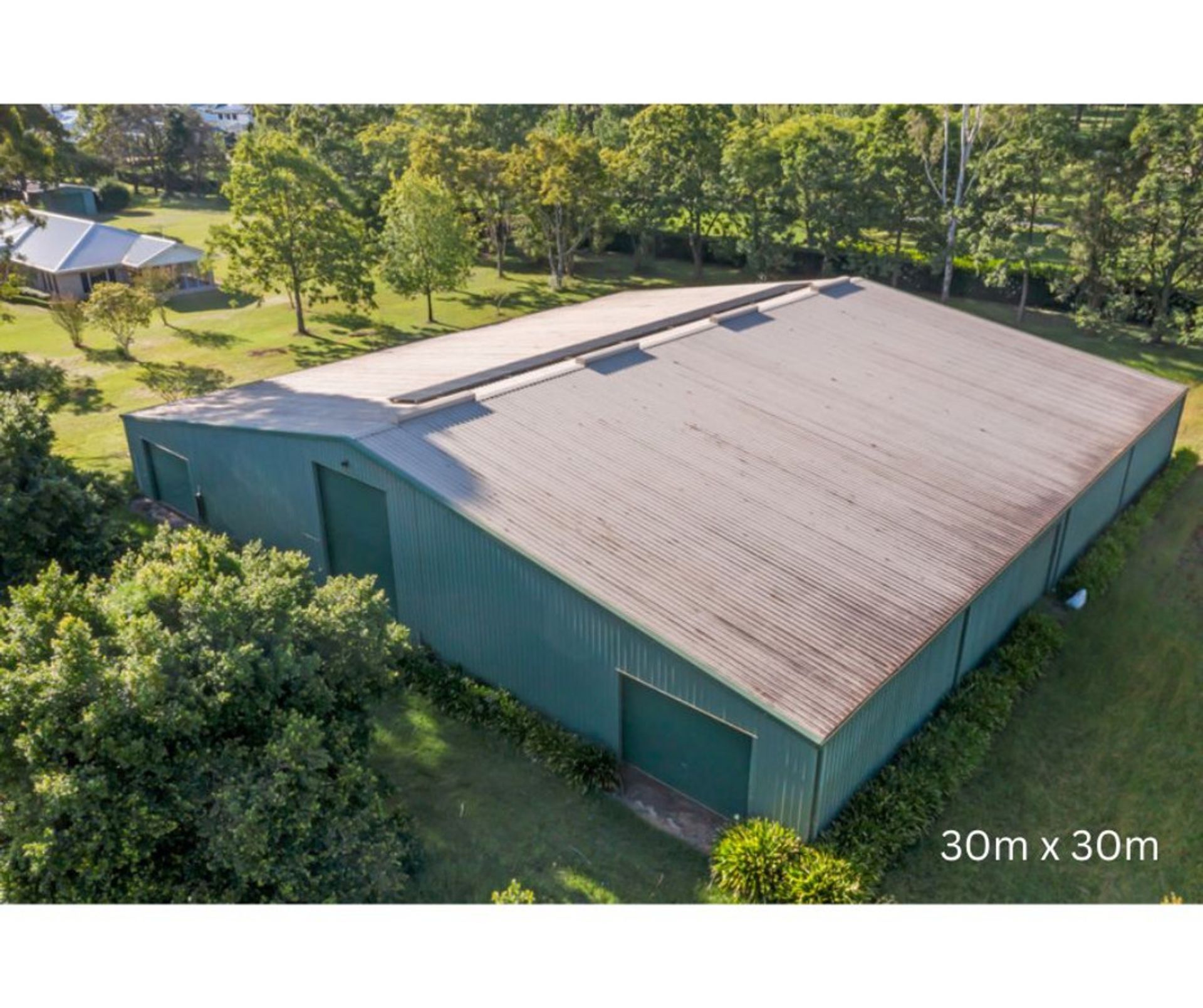 - 30 x 30m powered shed with concrete floor and 8 roller doors
