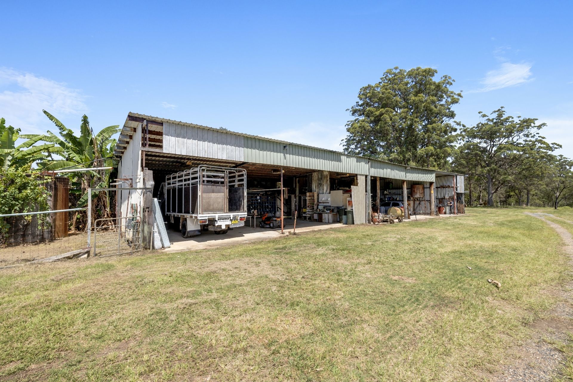 With multiple sheds across the property and separated into several paddocks, with a lane way running down the left side, almost all the way to the river and stockyards at the front of the property make this an ideal property for graziers, plenty of space for storing machinery and easy access to sort cattle. Worried about water? There are plenty of options available here with a large dam, several water tanks, and a pump available from the River – this property really does have it all. The River once had a track to it – it wouldn't be too hard to make this a reality again.
