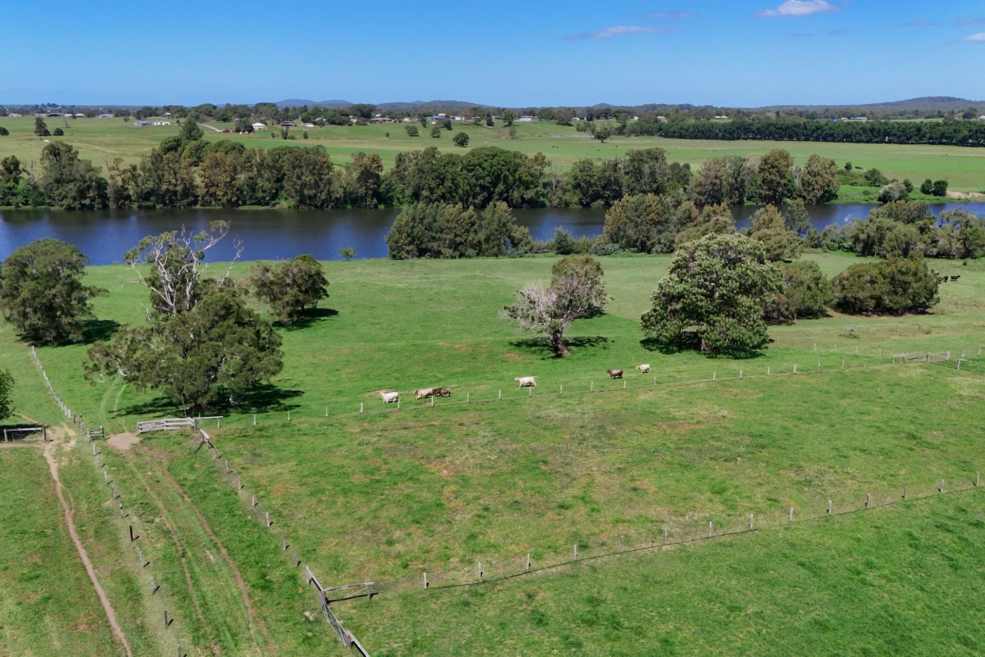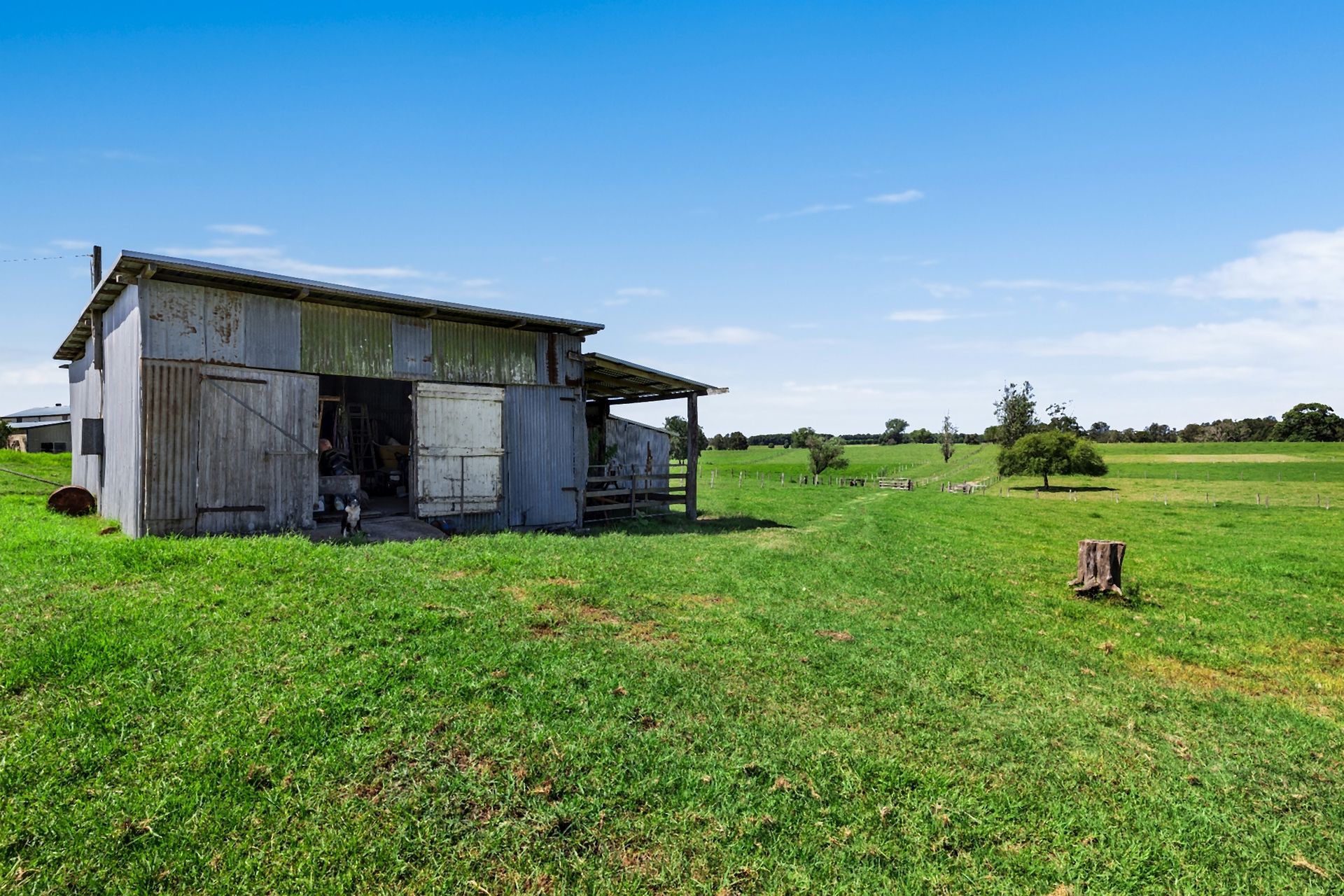 The whole property is split into several fenced paddocks, with a laneway down the left side, right to the River. Stock yards are available to make management of your stock a very easy process. A large shed offers protection from the weather for all your machinery needs and a cool room.