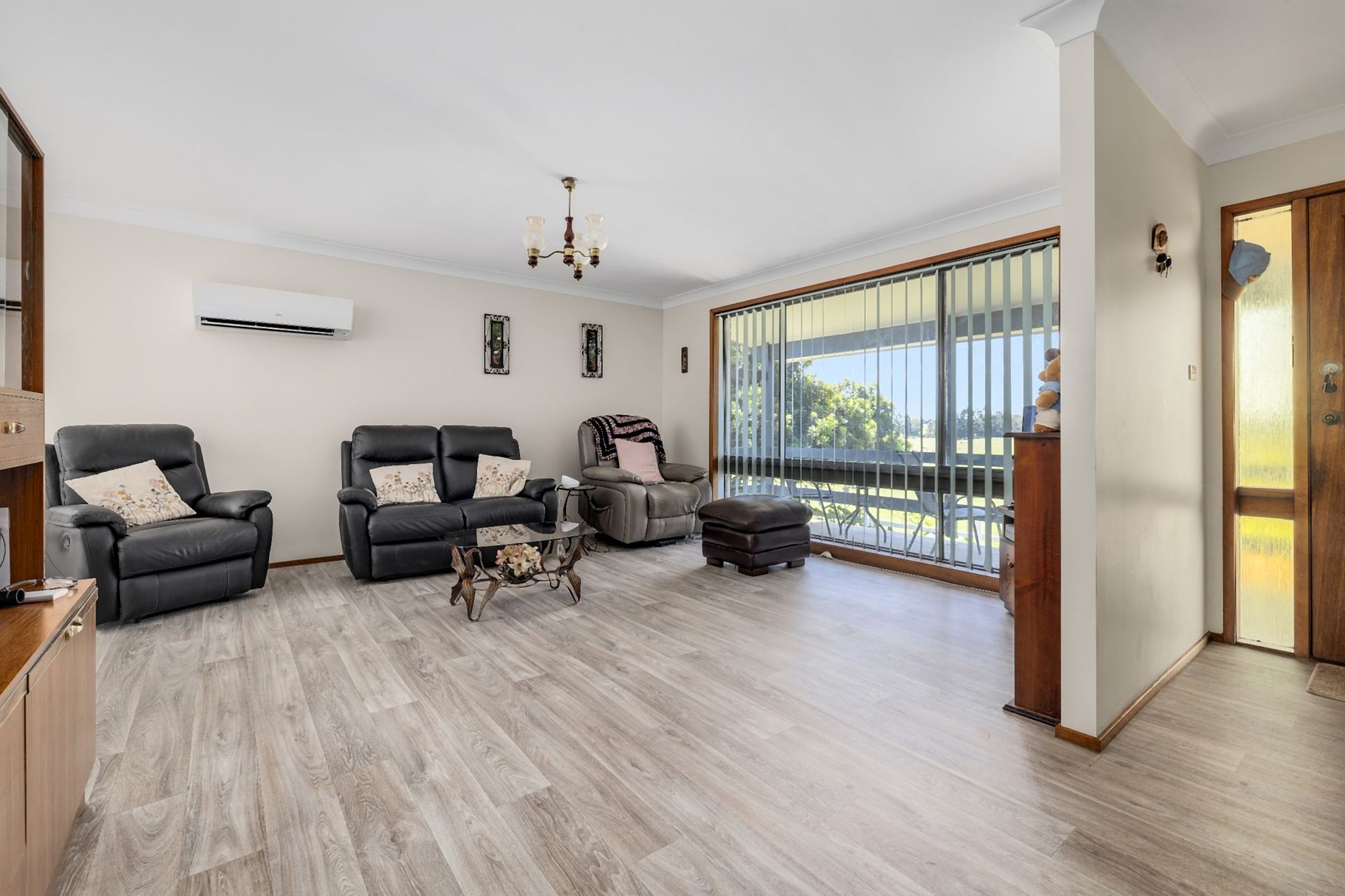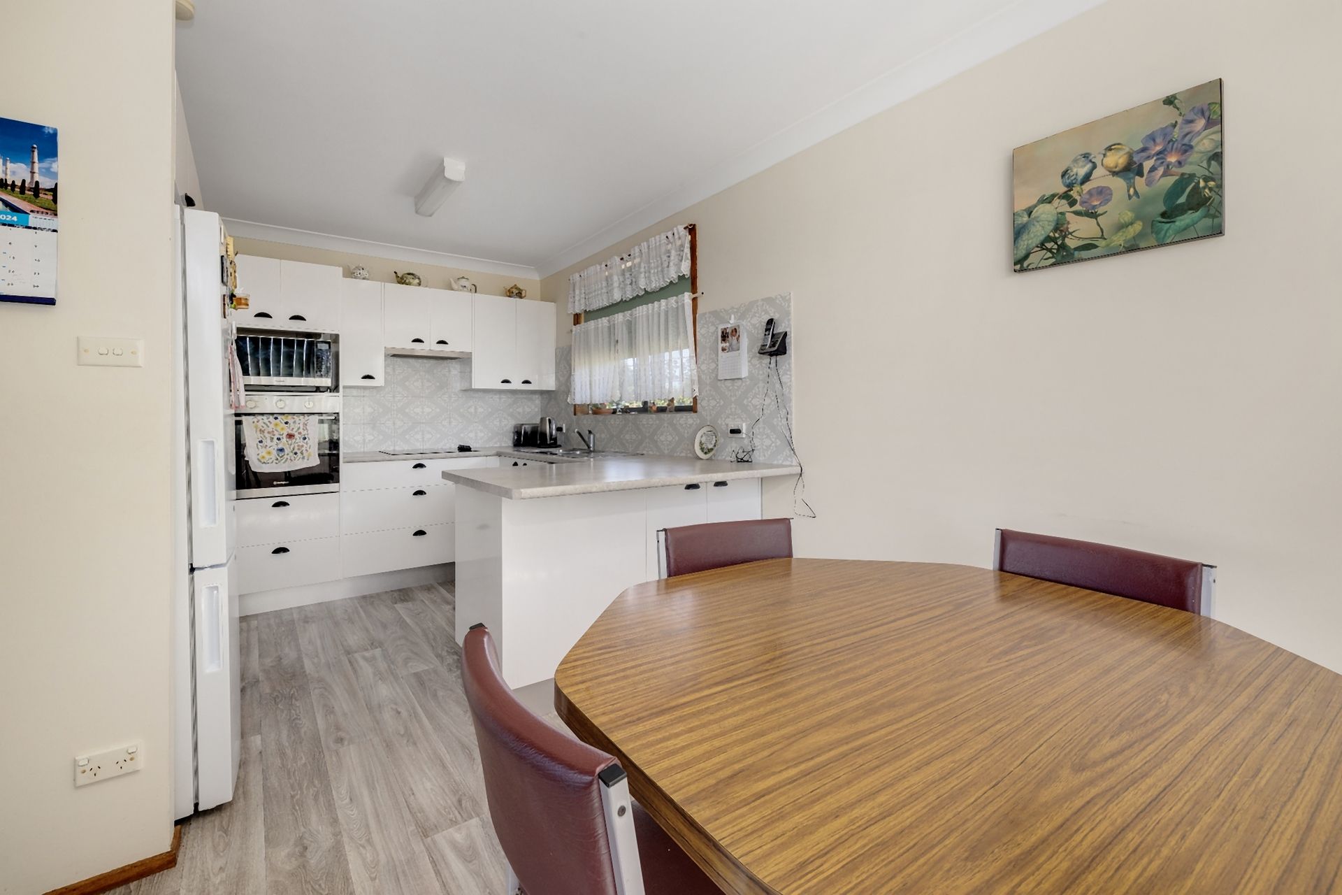 The home is lovely, a verandah overlooks the paddocks towards the River, with 3 bedrooms all with built-in robes, good-sized living room with air-conditioning, renovated kitchen, update flooring and a neutral colour palate throughout.