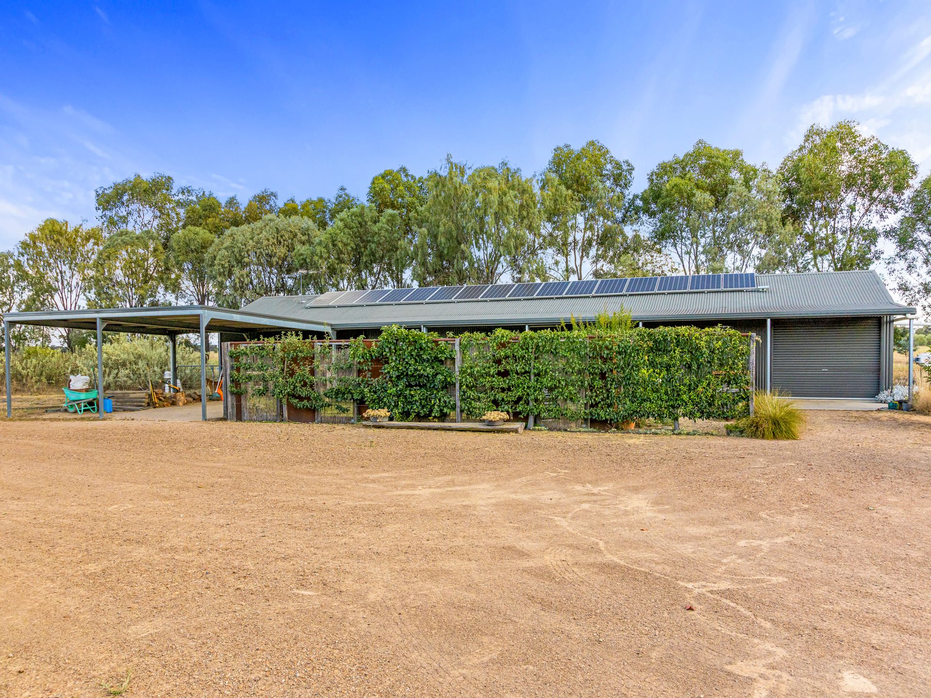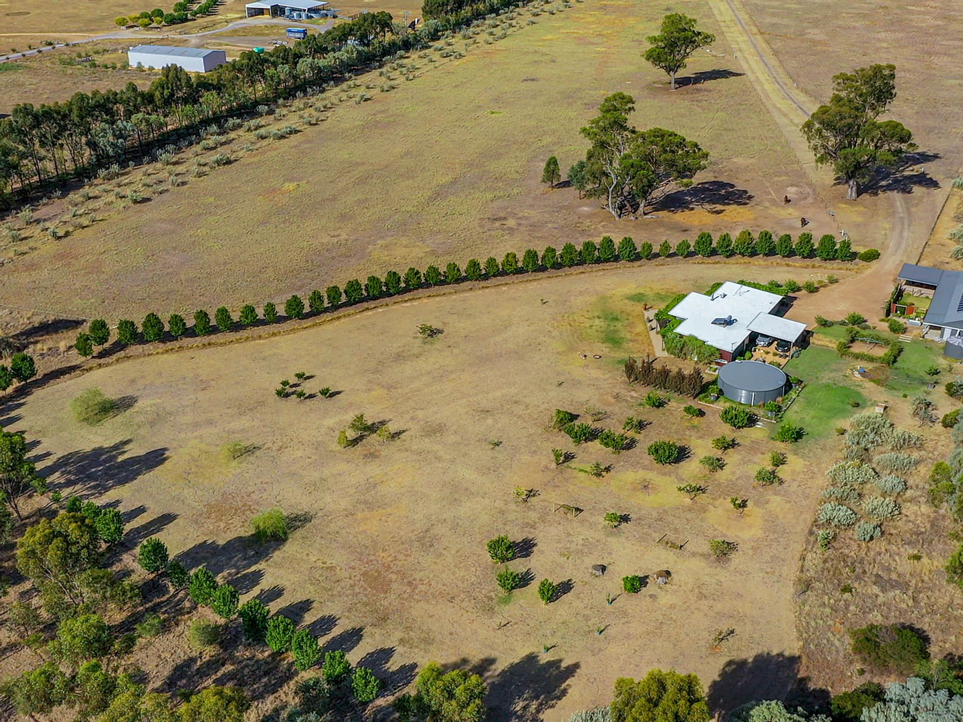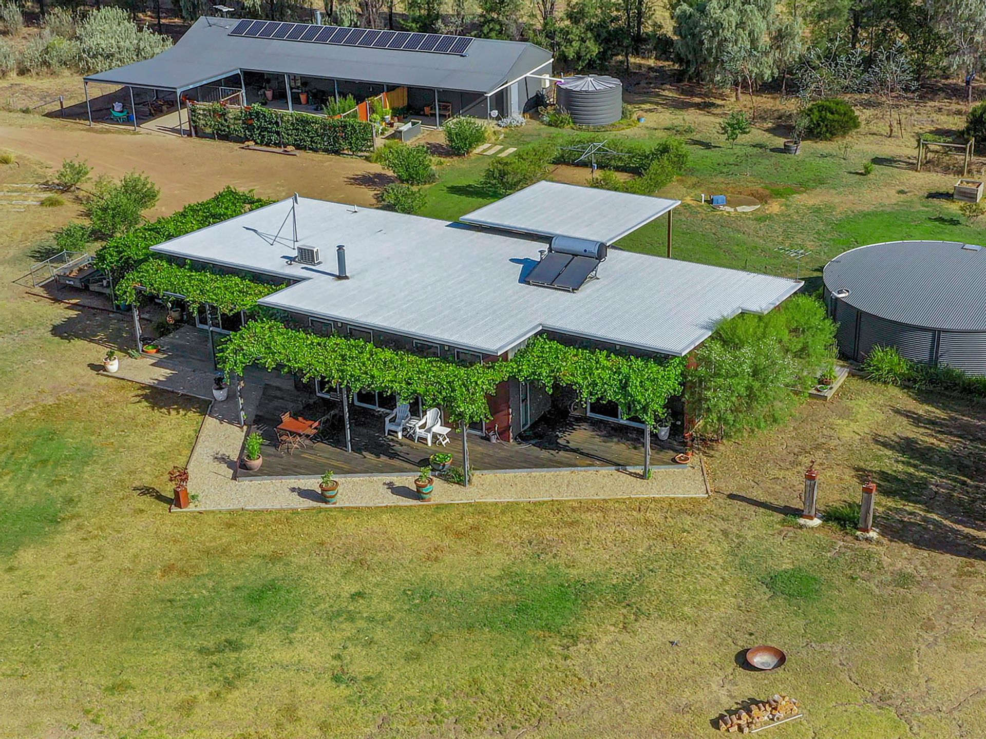 Upon arrival, you'll travel along a scenic 1.3-kilometre driveway from the main sealed road to the residence. The home is equipped with a solar hot water system, a complete water recycling infrastructure that services an established fruit orchard, and a substantial 130,000-litre water tank attached to the house. A 5.1 kW solar panel system significantly reduces power bills.