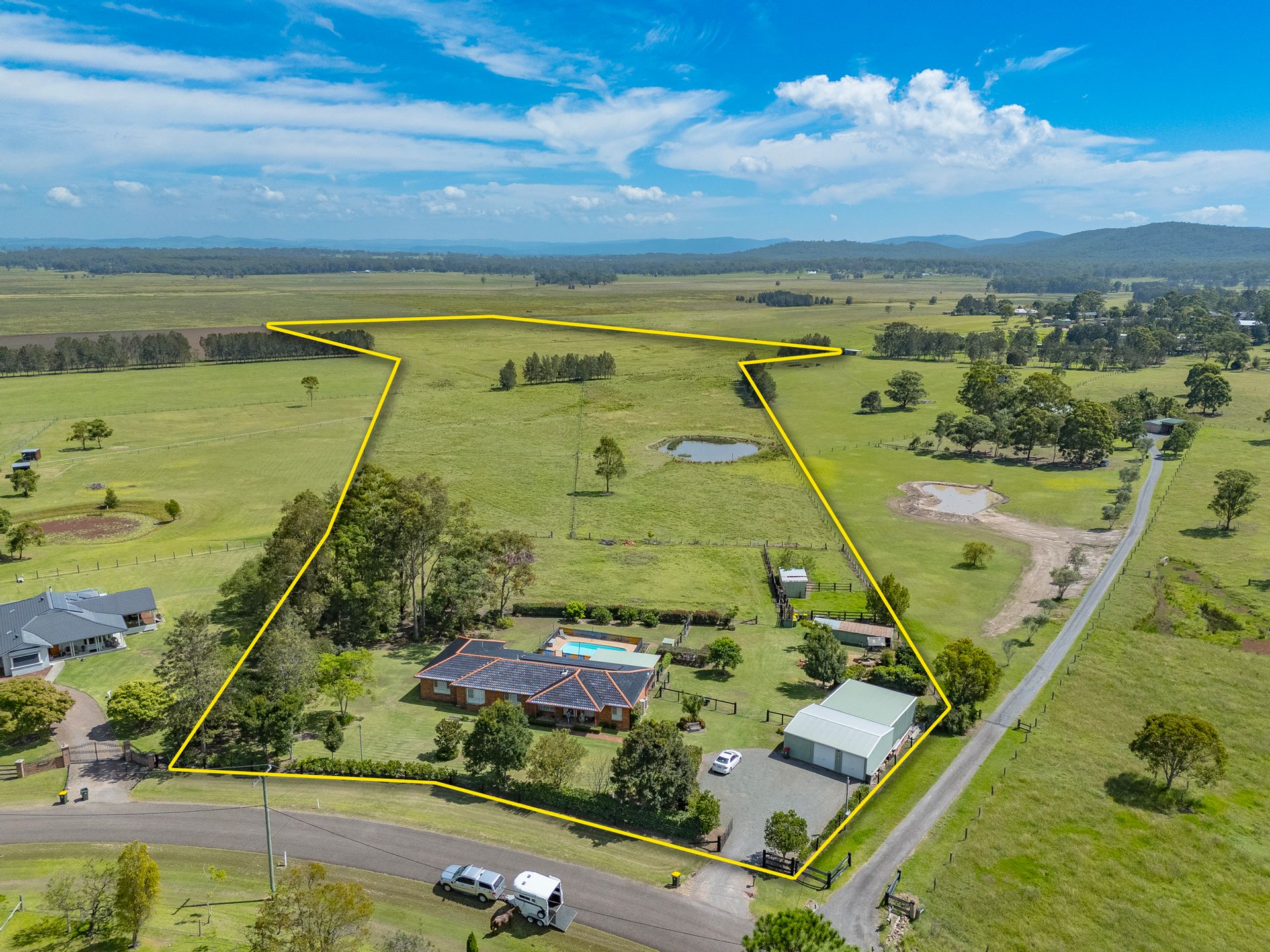 This private sanctuary is defined by an expansive and free-flowing layout, a series of spacious living zones, a stunning kitchen and a master bedroom with one of the most amazing ensuites you will find. In the heart of the home the open plan is great for entertaining with easy access to a large-scale alfresco area and a gorgeous in ground swimming pool. To round off the property there is ample shedding to store your tractors, trailers and boat and caravan. Kept in immaculate condition by house-proud owners, the landholding is simply breath-taking. With alluvial soils for hay making, split into several paddocks, this is a rare opportunity to live in an exceptional property, so close to everything the Hunter Valley has to offer.