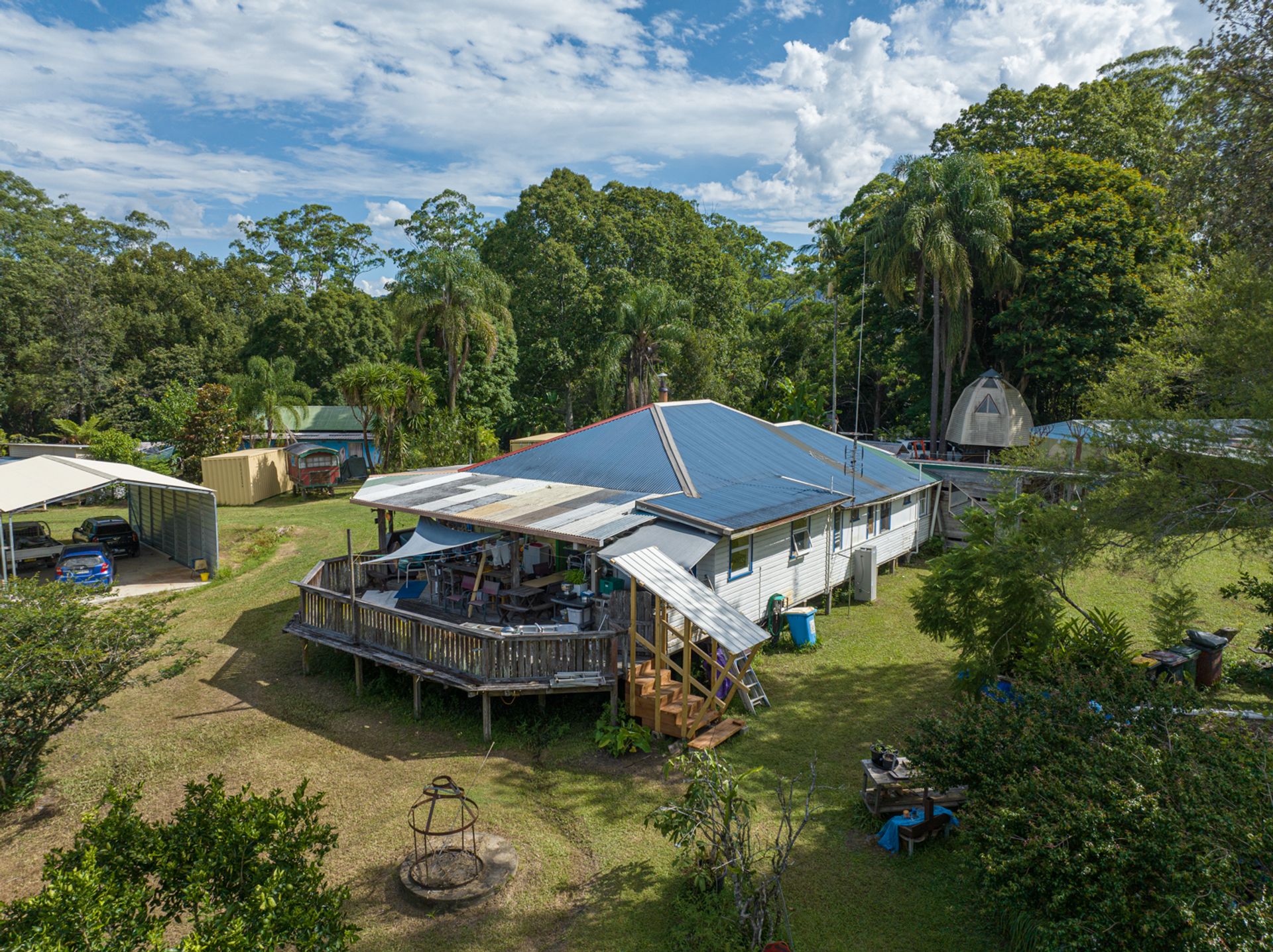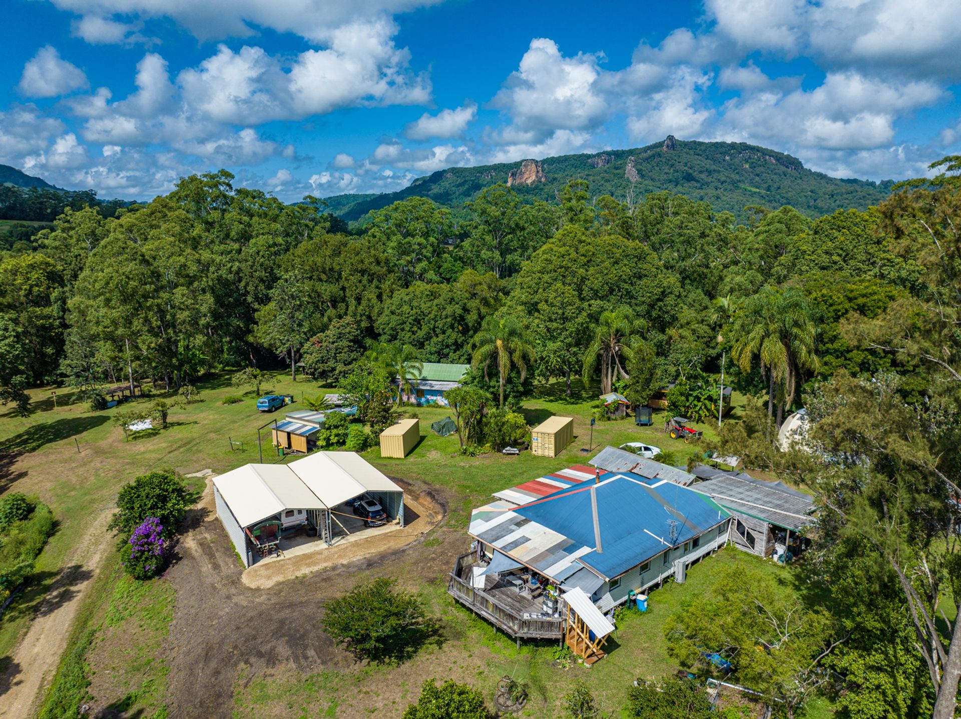 The market welcomes an extremely unique opportunity. 18.3 acres of land hidden away at the end of Thorburn Street. The house and infrastructure is built on a knoll, which would have some of the most epic views throughout the Nimbin Valley with the removal of some Camphor Laurel trees. The property has eco tourism approvals already in place, with many tourists and locals having stayed at the famous Rainbow Retreat.