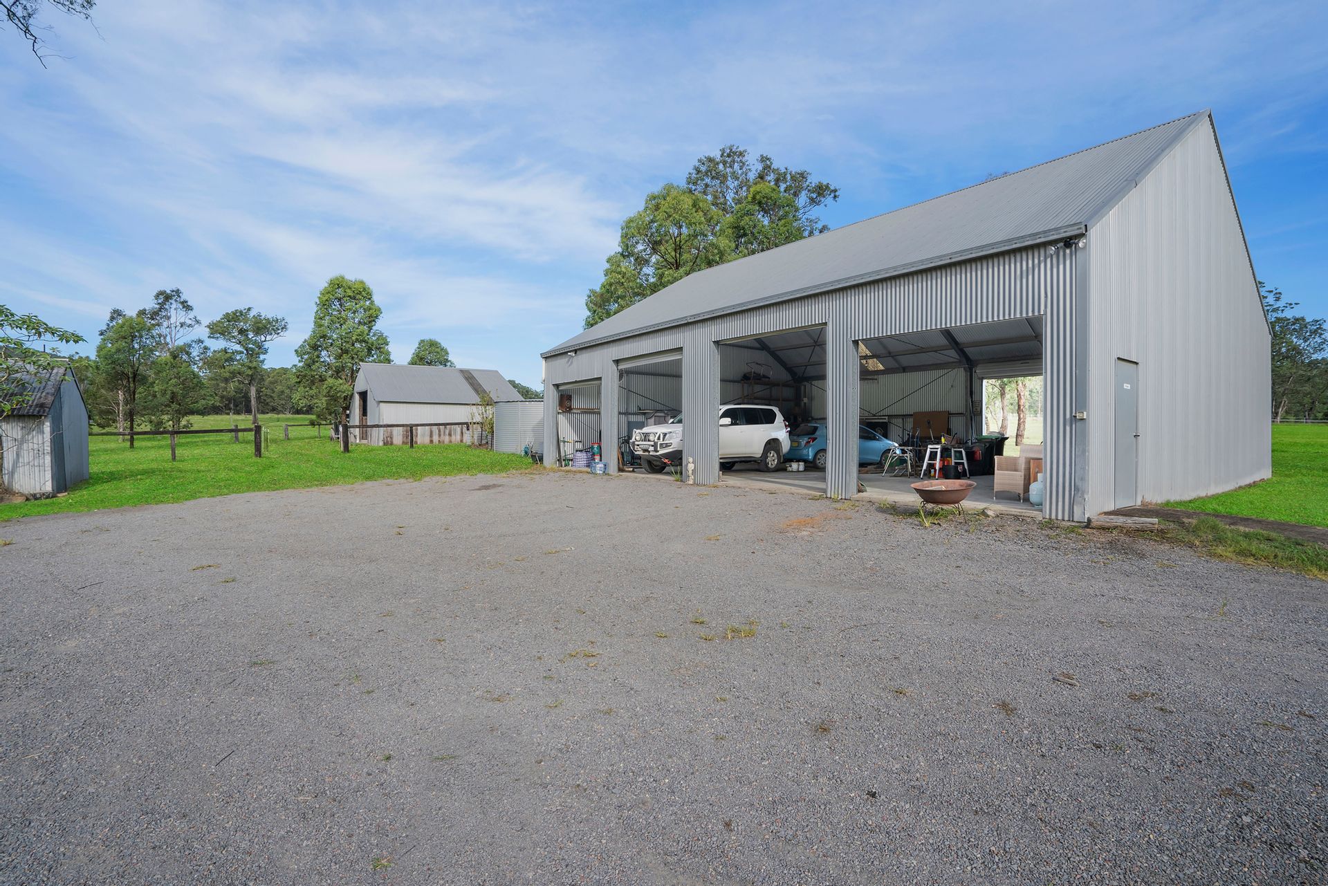 * 4 bay steel shed with breezeway & 3 phase power