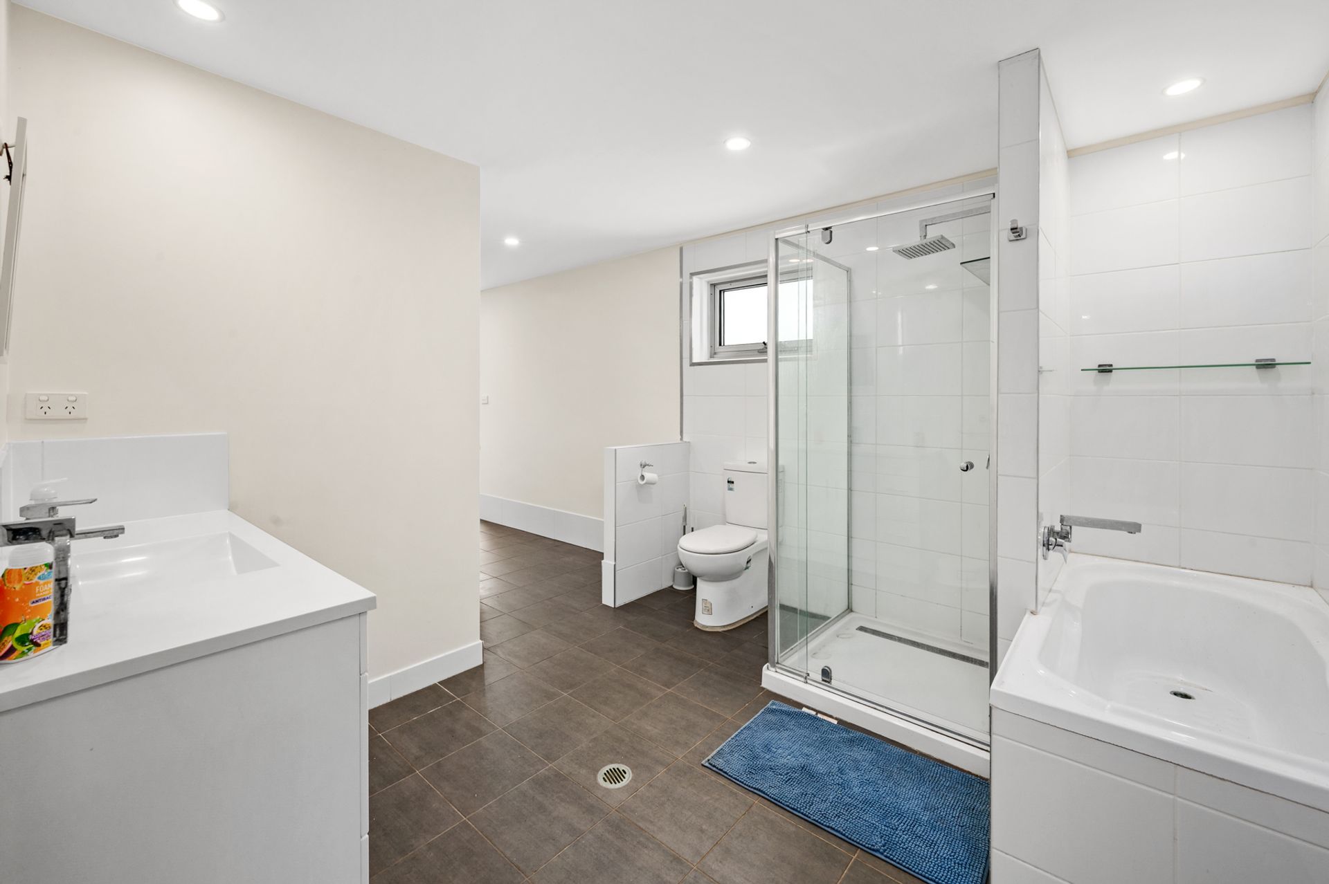 • Modern bathroom & laundry with bath, shower, vanity & toilet