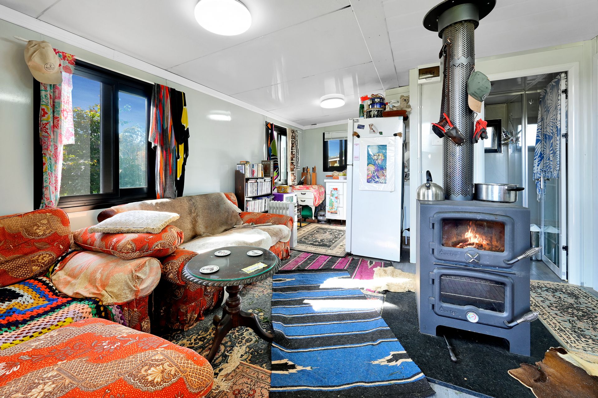 • The lower floor consists of an open plan lounge room/dining room/kitchen with the cosy winter warmth of a slow combustion wood heater.