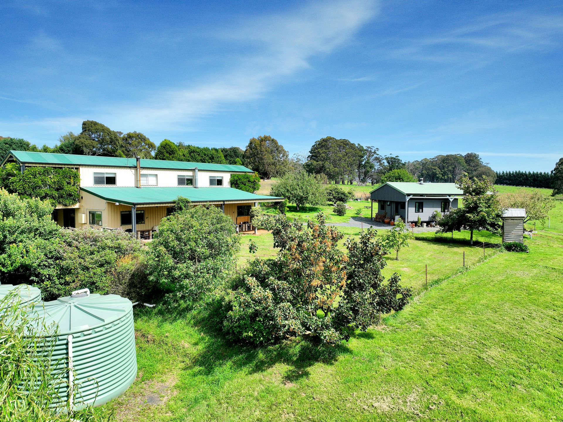 • Water needs are well catered to with two 22,000* litre rain water tanks which are fed from the house roof catchment.