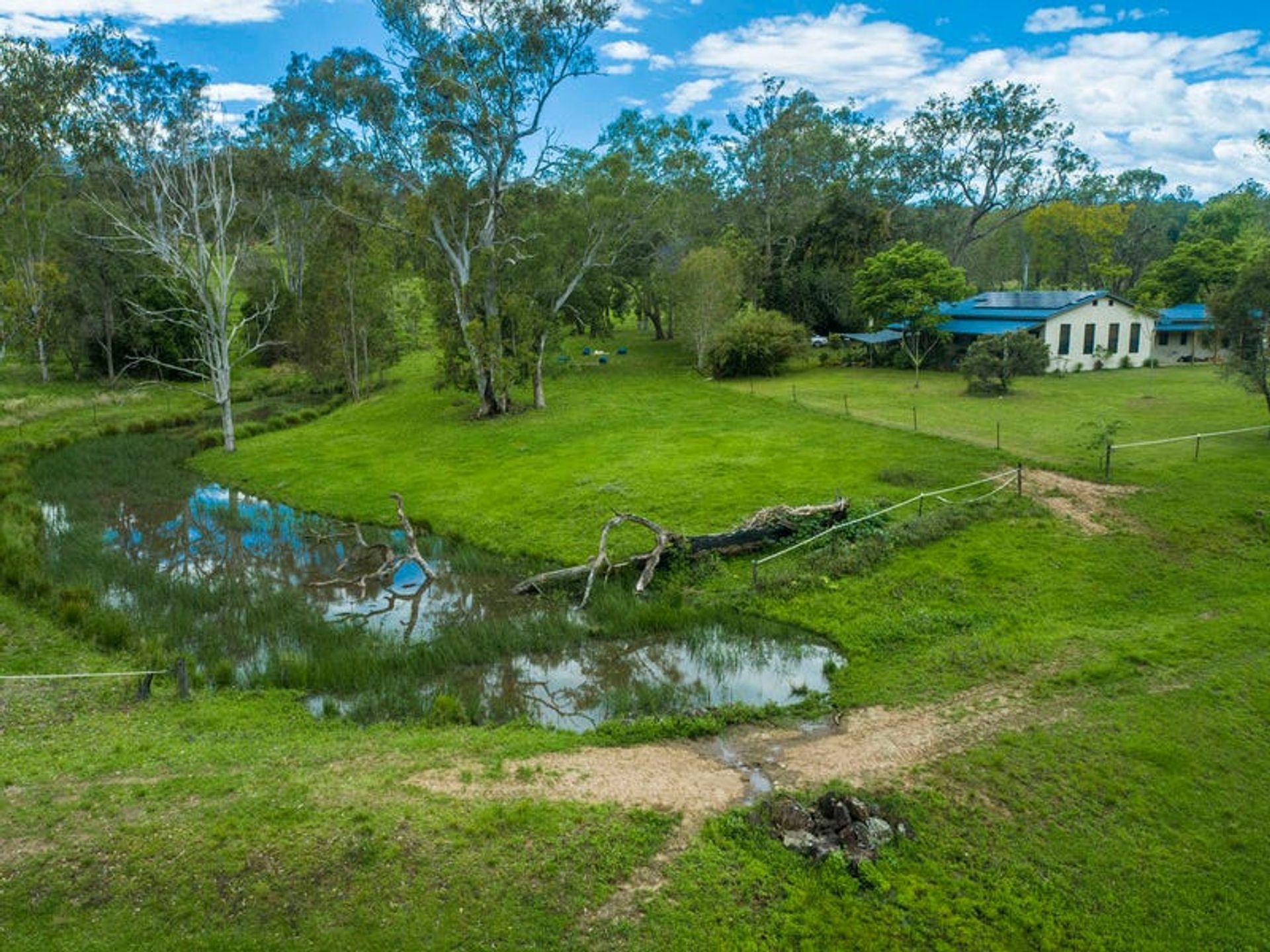 This holding is simply beautiful. At roadside it is quite elevated and falls away gently in an undulating pattern to reach a stunning section of the fast-flowing Leycester creek at the bottom of the land. Feeding into the creek are small spring-fed streams meandering and traversing the land. These support the network of permanent water-security, and are harnessed into 2 spring dams and a gorgeous natural billabong. Water storage includes 3 rain water tanks - house tank 12,000L, a shed tank 10,000L and a 10,000L header tank which is filled from the creek. The creek is fully accessible and is in parts Rainforest lined. The property is a short 5 km bicycle ride to the famous Hanging Rock Falls - a perfect example of the area's unique topography. The perimeter is fully fenced with roughly 23 paddocks, and each horse enclosure is sheltered and has water. The paddocks are pasture improved using mostly natural fertilizers with constant attention paid to weed eradication.