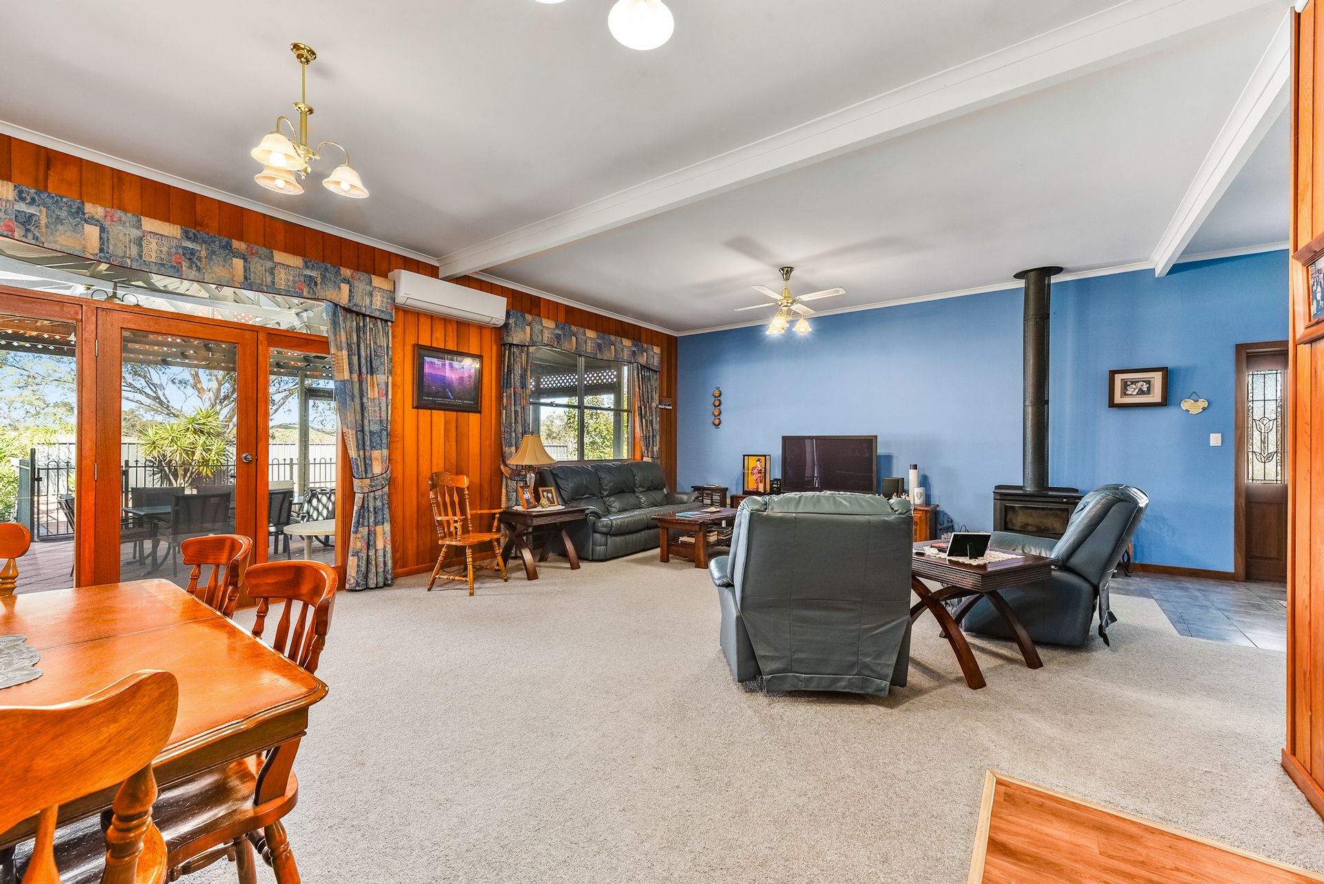 A very appealing home boasting high ceilings and a spacious open plan living area with a recently installed modern kitchen that includes quality appliances and dishwasher. There's more than enough room for a family dining table, there's a large lounge area all kept comfortable year-round with the split system air conditioner and slow combustion woodfire. There are three good sized bedrooms plus office or fourth bedroom; the main with walk-in robe and two with built-ins. The central bathroom has a corner vanity, separate bath and shower plus a separate toilet.